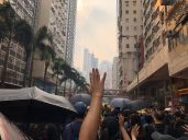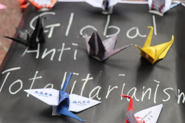 網民同時發起「全球反極權大遊行」,由銅鑼灣出發往中環方向,事前未有向警方申請不反對通知書。警方在遊行未起步時施放催淚彈,及後出動水炮車。