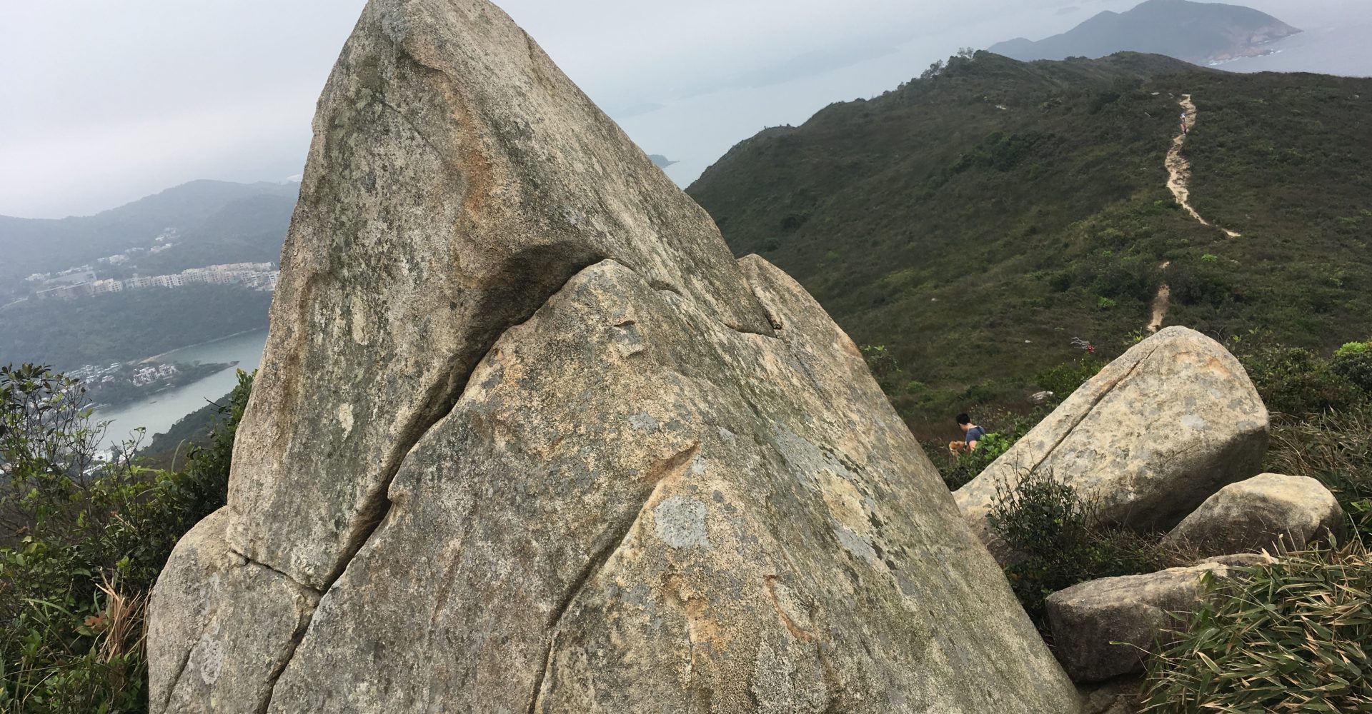 龍蝦灣郊遊徑初段先上石級,約走半小時,即抵291米高的大嶺峒,有標高柱容易辨認,可俯瞰清水灣、布袋澳的海灣風光,個人最欣賞則是像保齡球樽的果洲群島。