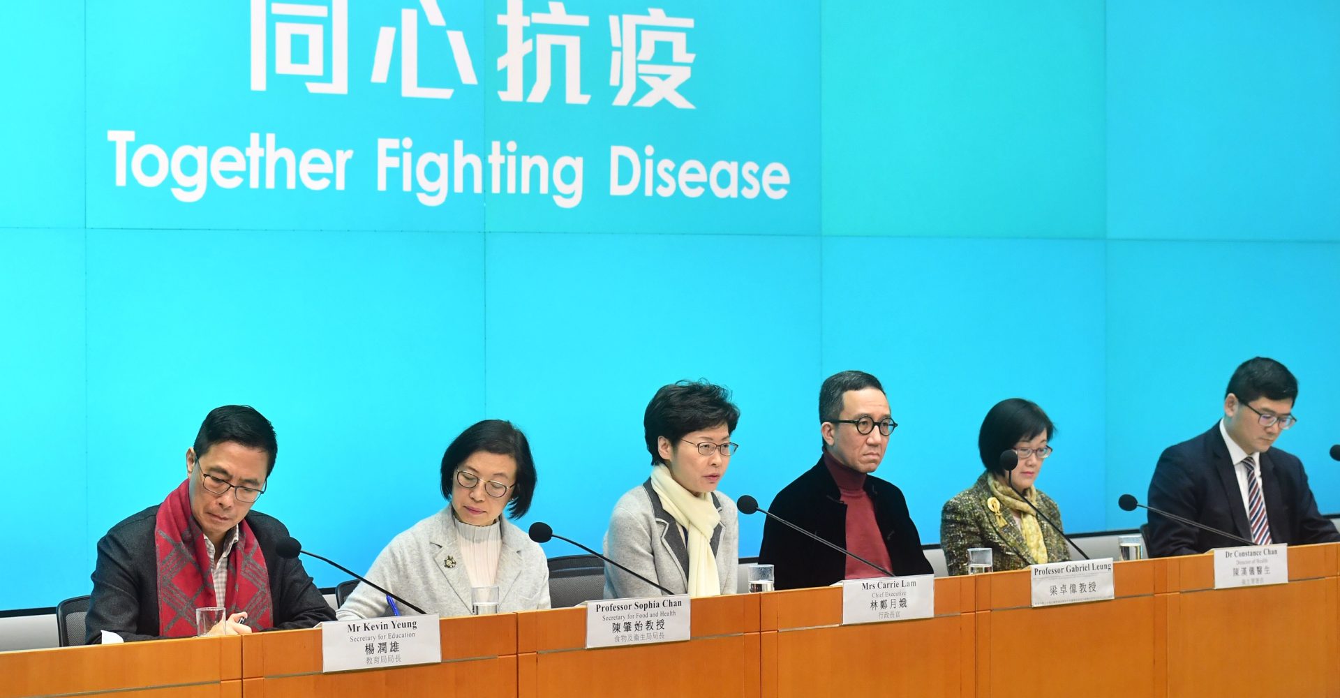 行政長官林鄭月娥因應新型冠狀病毒疫情舉行抗疫記者會,宣布加強管制出入口,無限期暫停來往湖北武漢的航班和高鐵。