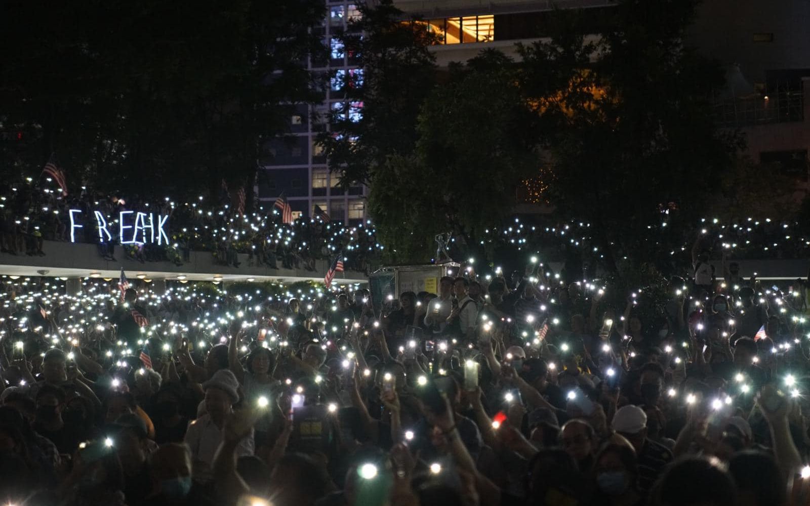 網民發起的「香港人權民主法案集氣大會」,晚上在中環遮打花園舉行,聲援美國參眾兩院在10月15日復會及辯論《香港人權及民主法案》。大會指有13萬人參加集會,促請美國國會通過法案。