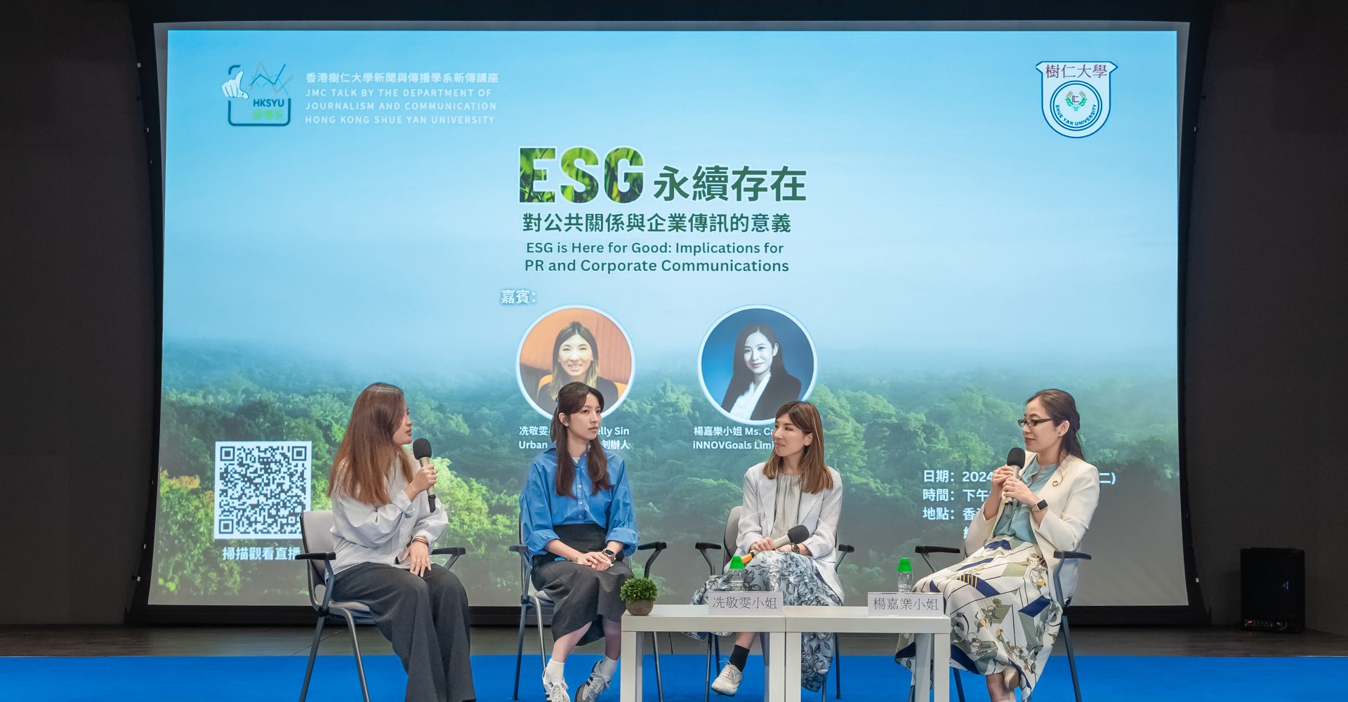 香港樹仁大學新聞與傳播學系舉辦「新傳講座」(JMC Talk),主題為「ESG永續存在:對公共關係與企業傳訊的意義/影響」。