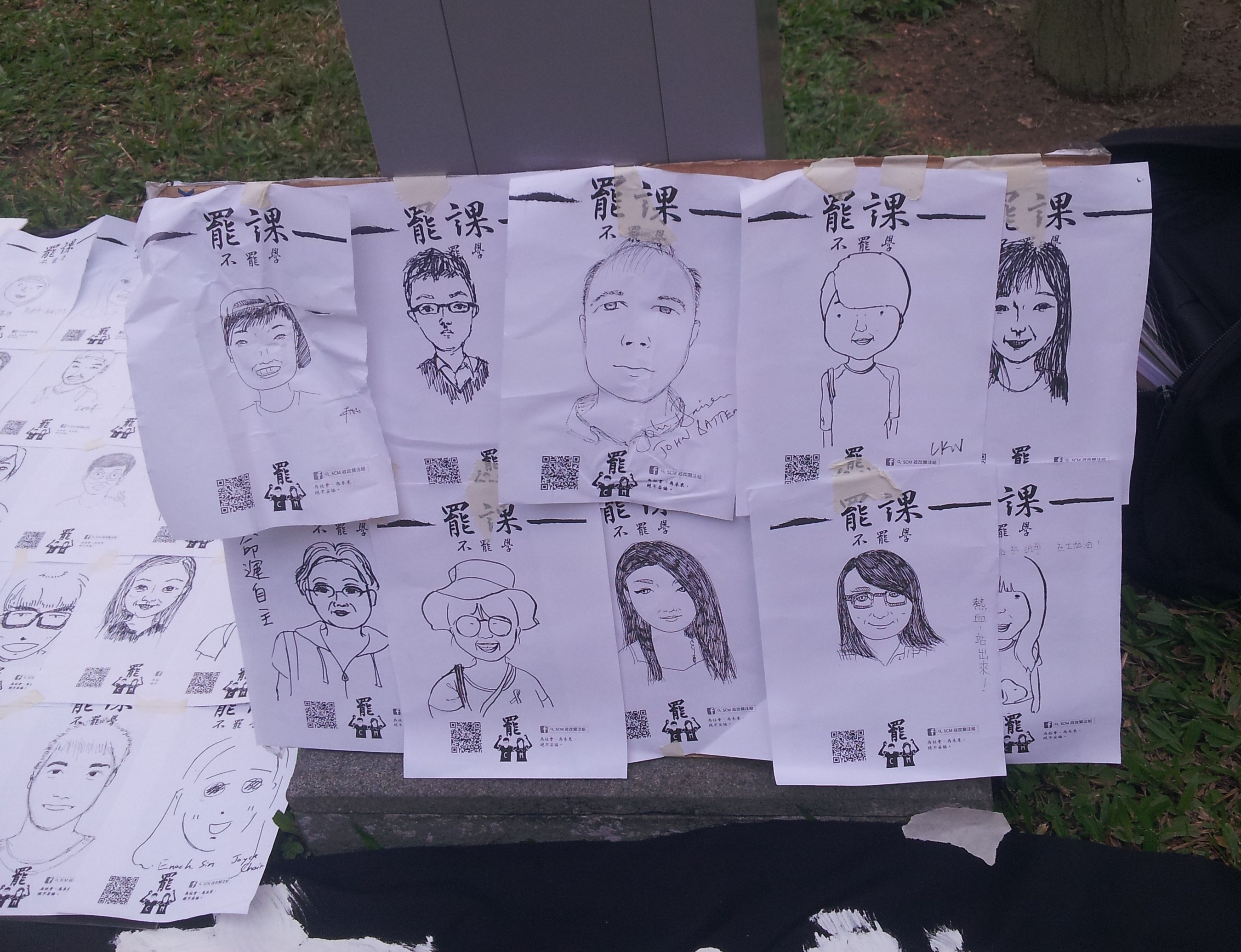 多名城大創意媒體學院的學生在場舉辦了「一人一畫」的活動,他們即場為參加者畫下其肖像,再讓參加者留言寫下訴求,然後貼到板上。他們認為表達意見可以有不同的方法,用圖畫來表達是有趣創新的想法。