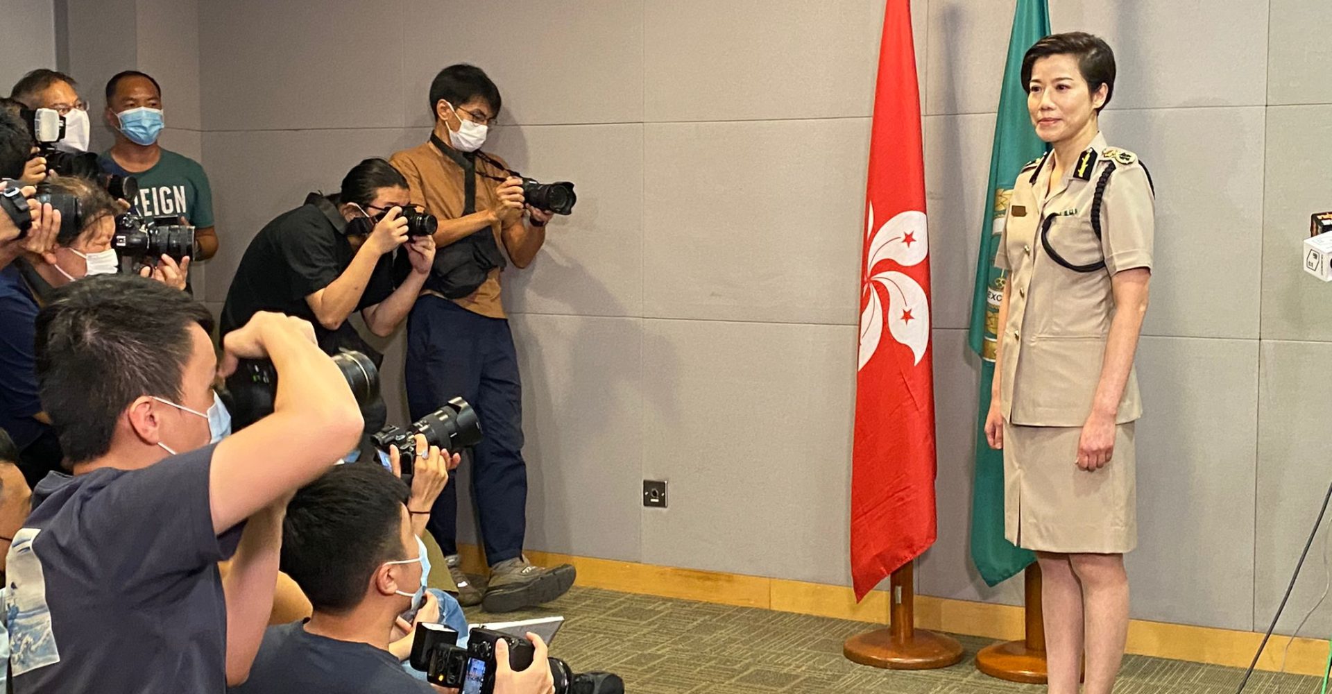 (新傳網圖片:海關關長何珮珊會見傳媒)