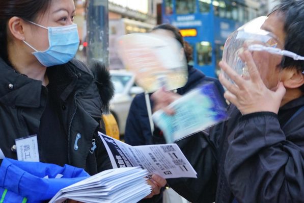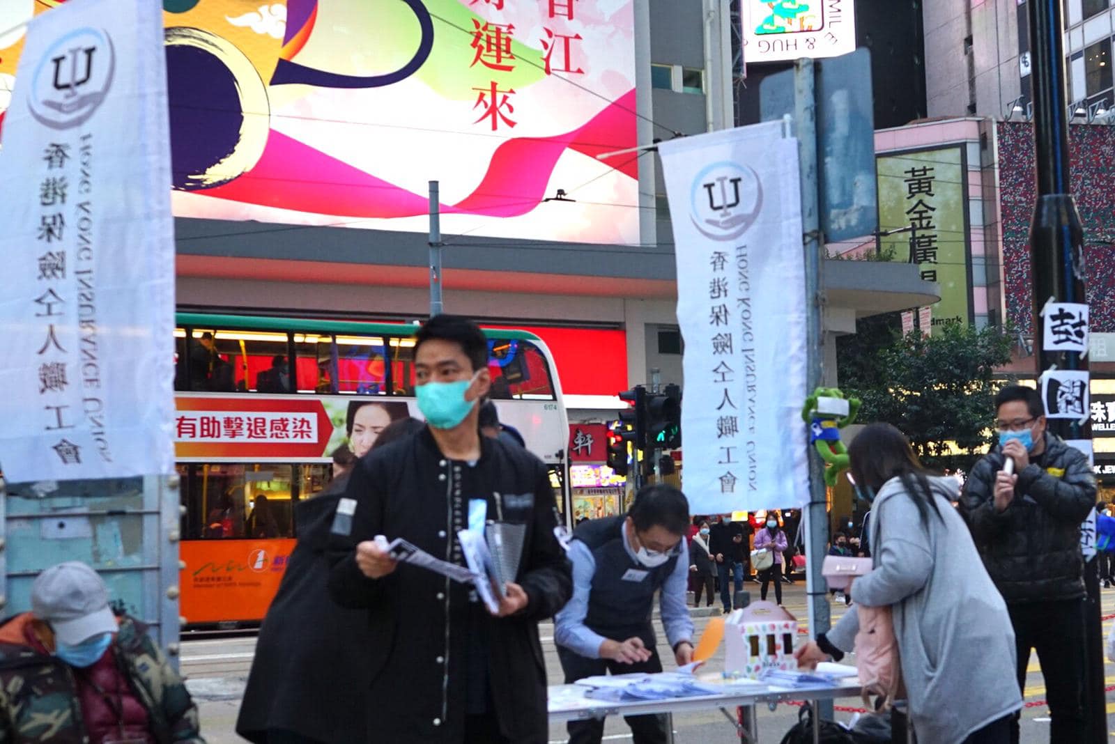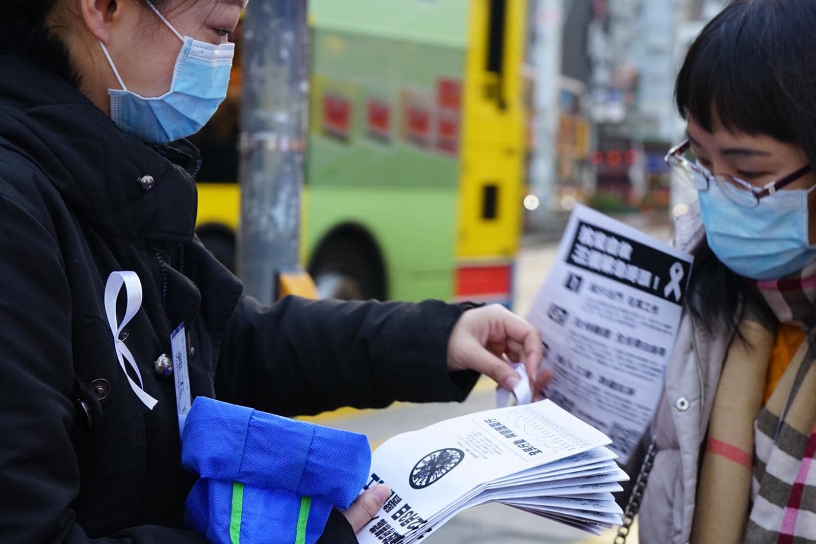 社會新聞編輯推介 保險工會籲抗疫遭辱罵 January 30, 202001514 12個工會分別在港九新界擺街站,呼籲市民與醫護同行抗疫。當中香港保險仝人職工會下午5時在銅鑼灣派發單張和白絲帶,期間遭市民辱罵。 記者、攝影:鄧佩茹 Related Related tags : 鄧佩茹香港保險仝人職工會 張建宗:已搜購500萬口罩陸續抵港 Previous Post 【鄧佩茹】年初六銅鑼灣搶口罩 Next Post