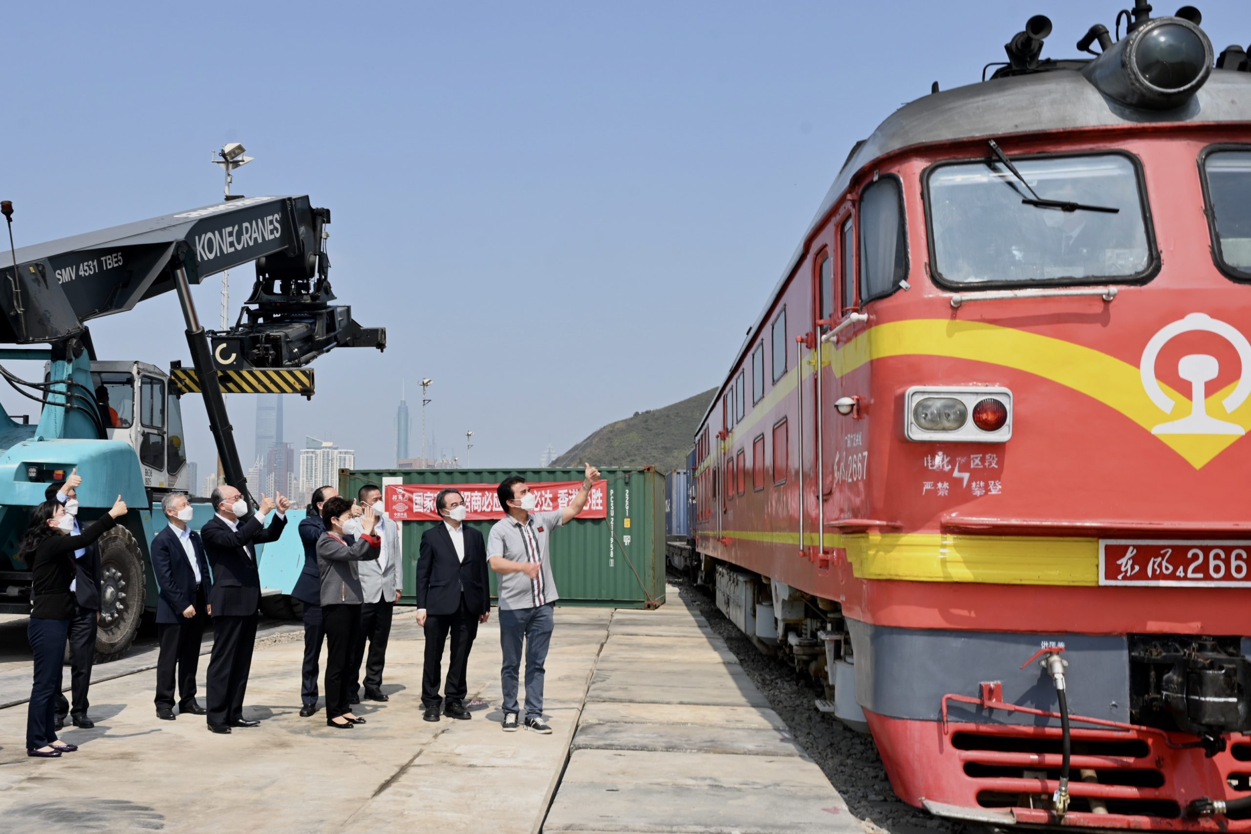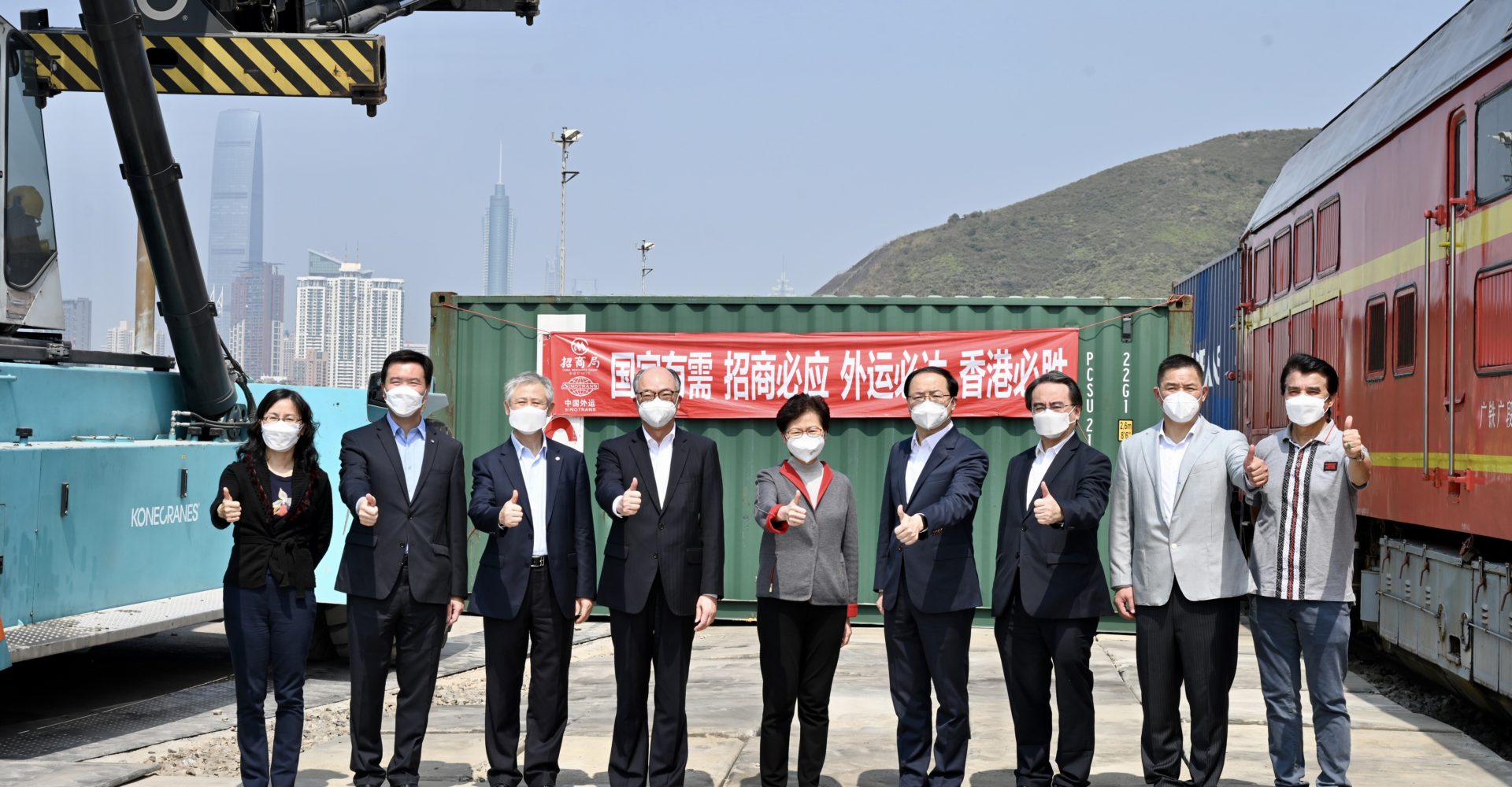 行政長官林鄭月娥、運輸及房屋局局長陳帆聯同中聯辦青年工作部部長張志華、港鐵行政總裁金澤培等,在港鐵羅湖編組站鐵路貨場迎接列車,並在合照時高呼「香港加油」。