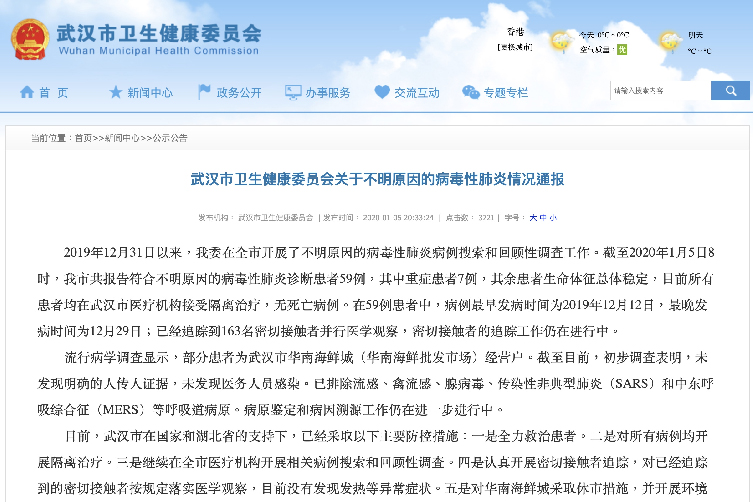 武漢出現多宗不明原因的病毒性肺炎疫情個案,內地專家組初步判定引起不明肺炎病例的病原體為新型冠狀病毒,下一步需結合病原學研究、流行病學調查和臨牀表現進行專家研判。