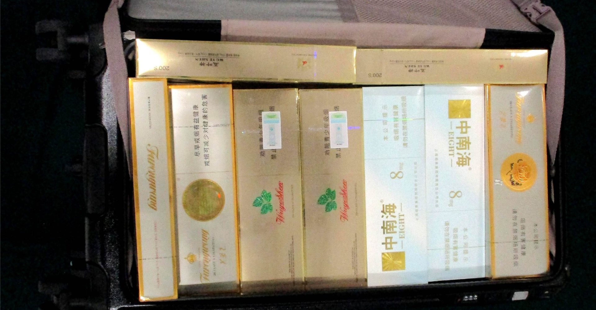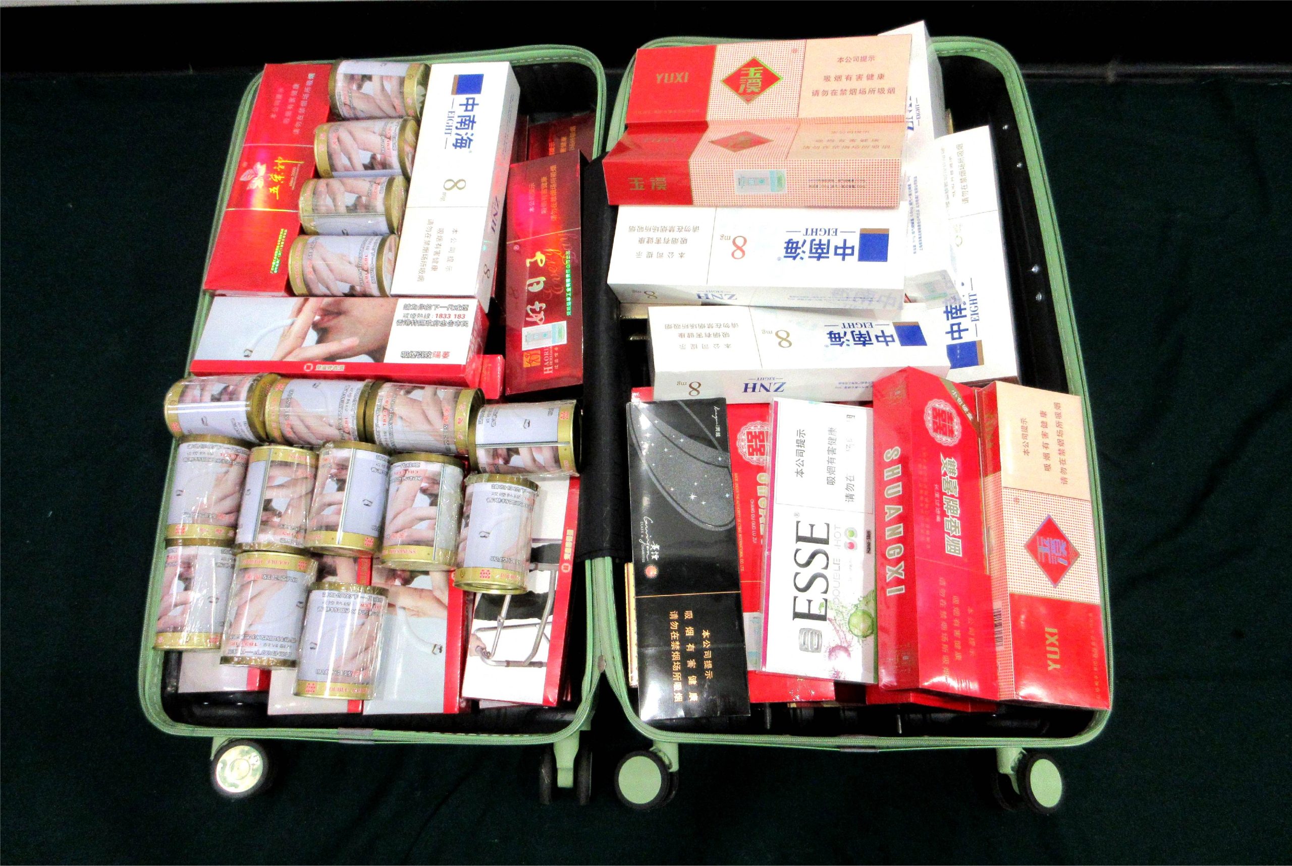 主圖片:61歲被告個人行李內藏有的未完稅香煙。(來源:政府新聞處)