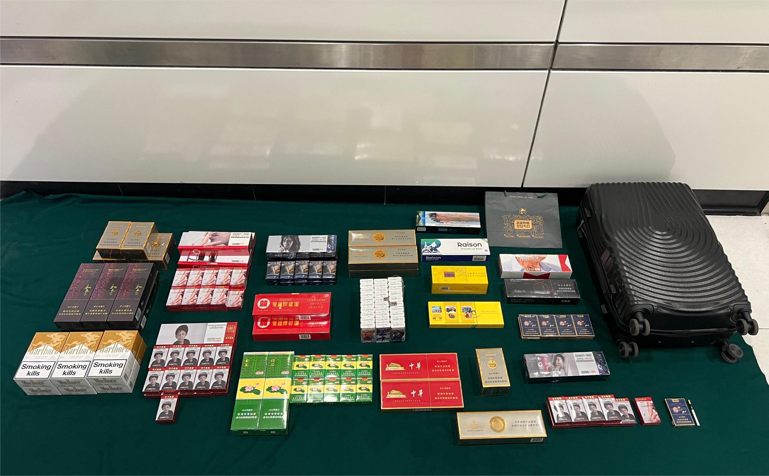 海關發言人表示,在其中一宗案件,海關人員於本月11日,在落馬洲支線管制站截查一名43歲抵港女旅客時,在她身穿的外套衣袋及其攜帶的個人行李內,共檢獲10,781支未完稅香煙,估計市值約44,000元,應課稅值約35,600元。該名旅客被捕後遭檢控,今日在被法庭判處監禁4個月及罰款1,000元。
