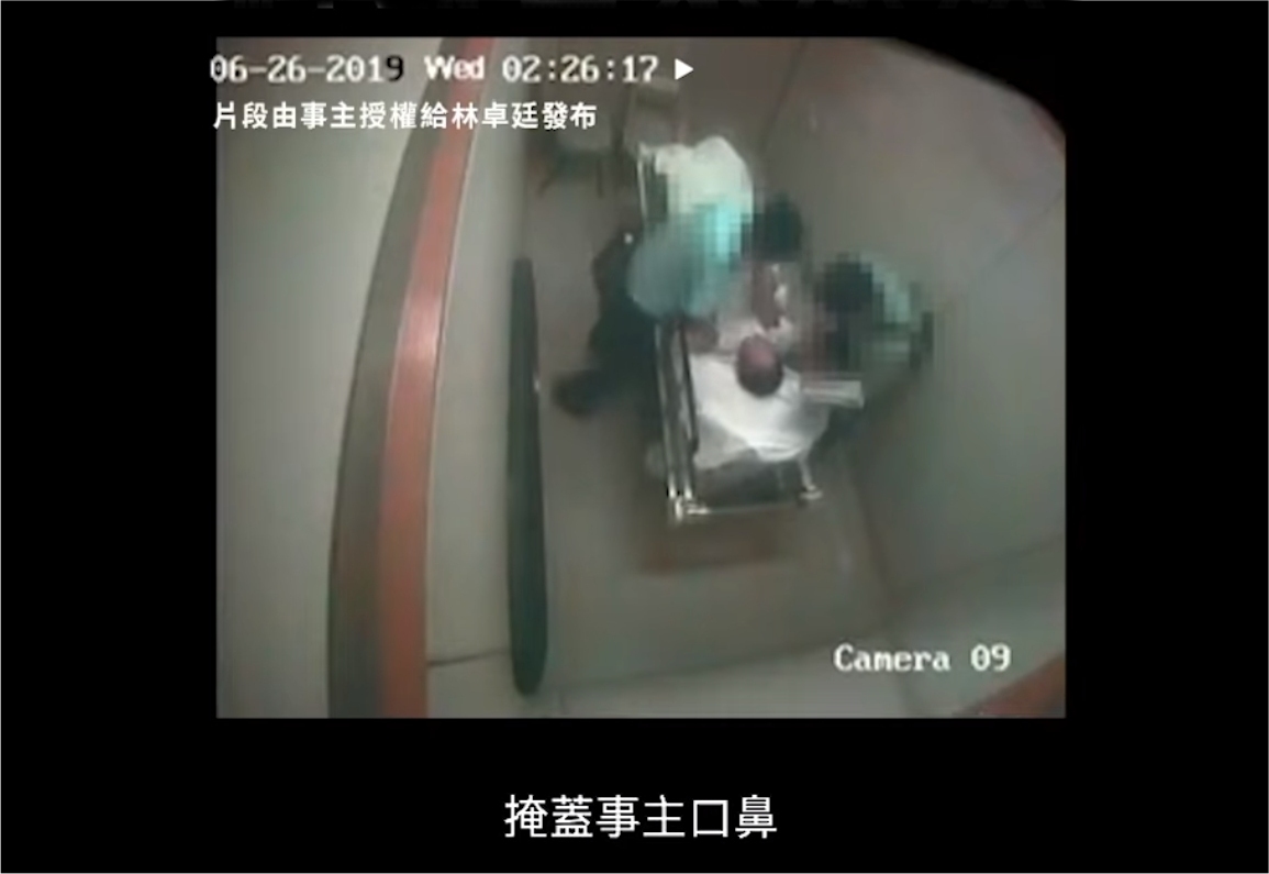 事主兩名兒子與立法會議員林卓廷召開記者會,公開事主於6月25日,在醫院獨立病房內被警務人員襲擊的閉路電視片段。