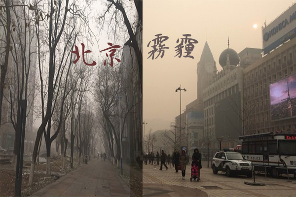 十二月過了三分之一,北京見藍天的日子「一隻手數得曬」,基本上大家都是在灰朦朦的環境中生活,白天大部分時間都像黃昏一樣。霧霾指數過500的時候,不 但看不清前面的大廈,更實實在在的是「伸手不見五指」。據新華社報導,北京市應急辦於12月7日首度發布空氣污染紅色預警措施 ,北京市教委當晚發布通知,要求中小學、幼兒園、少年宮及校外教育機構在紅色預警期間停課,至11日復課。