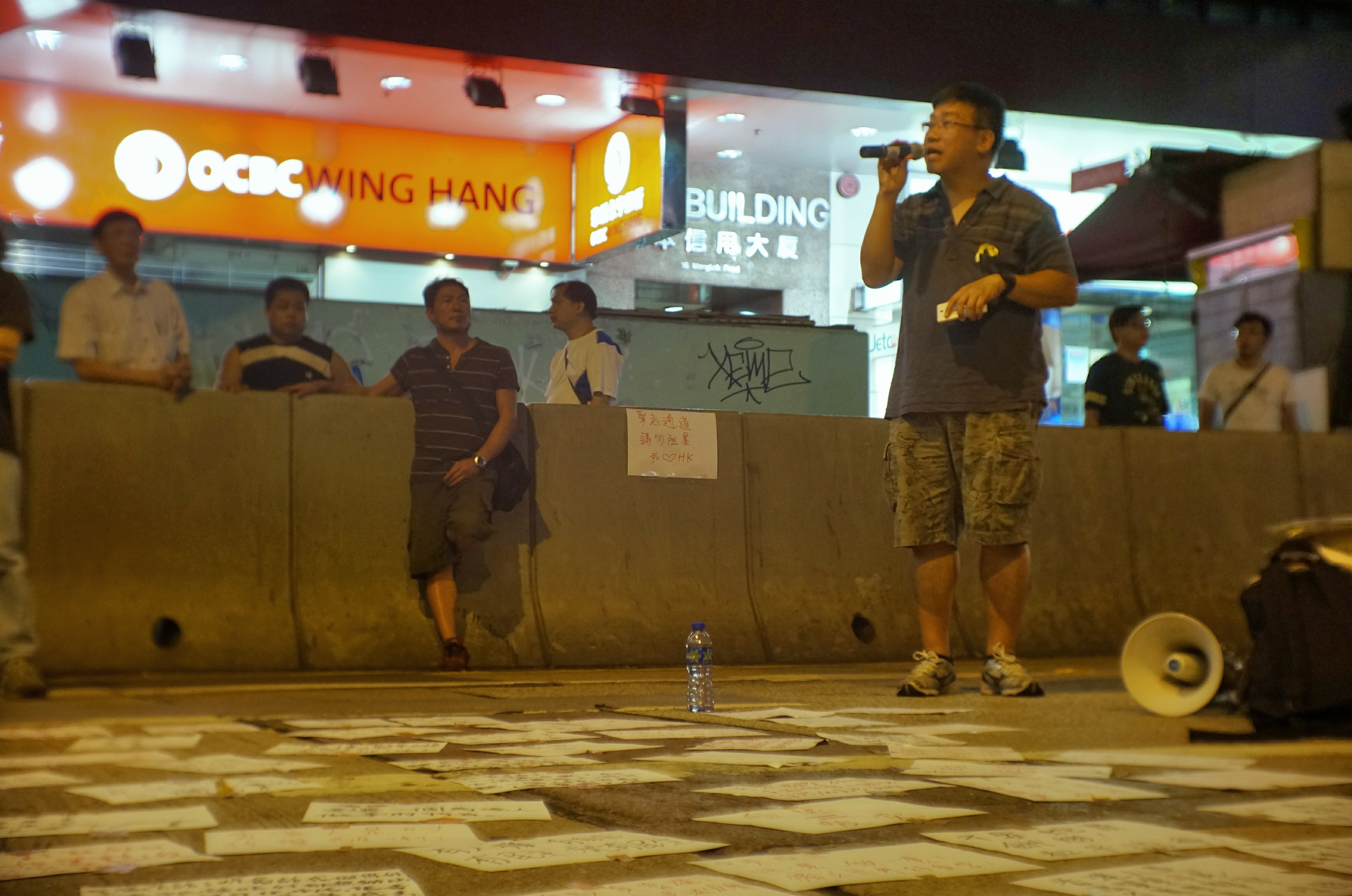 -很抱歉佔中行動對市民及附近商戶造成不便,希望他們接受短時間的干擾及諒解,換來為香港帶來長遠的制度。他強調只有行政長官梁振英辭職,才能迅速化解目前危機。
