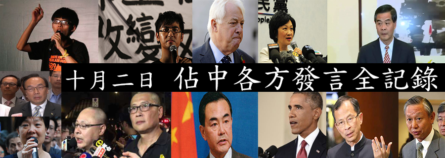 -特區政府從來沒有以殘暴手法驅散人群,又指催淚彈只是很基本的方式驅散示威者,沒有特別殺傷力。勸喻佔中三子等人「見好就收」,否則特區政府有責任維持社會秩序。