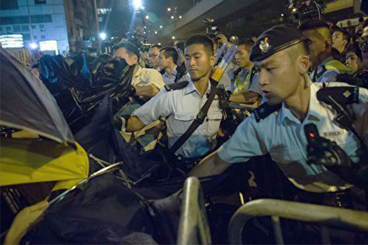 現場有手持長盾的警員向東面推進,亦不繼呼籲示威者離開,否則不排除作出拘捕行動。示威者緩緩後退,期間有示威者向警員投擲水樽等雜物。清場行動期間,另有示威人士一度與警方爭辯,引起傳媒團觀,該示威者及後被警方帶走。凌晨2時後,示威者陸續散去,梁頌恆等人亦已離開現場。至凌晨3時許,警員開始撤下防線,道路再次通車,警員亦陸續離開。