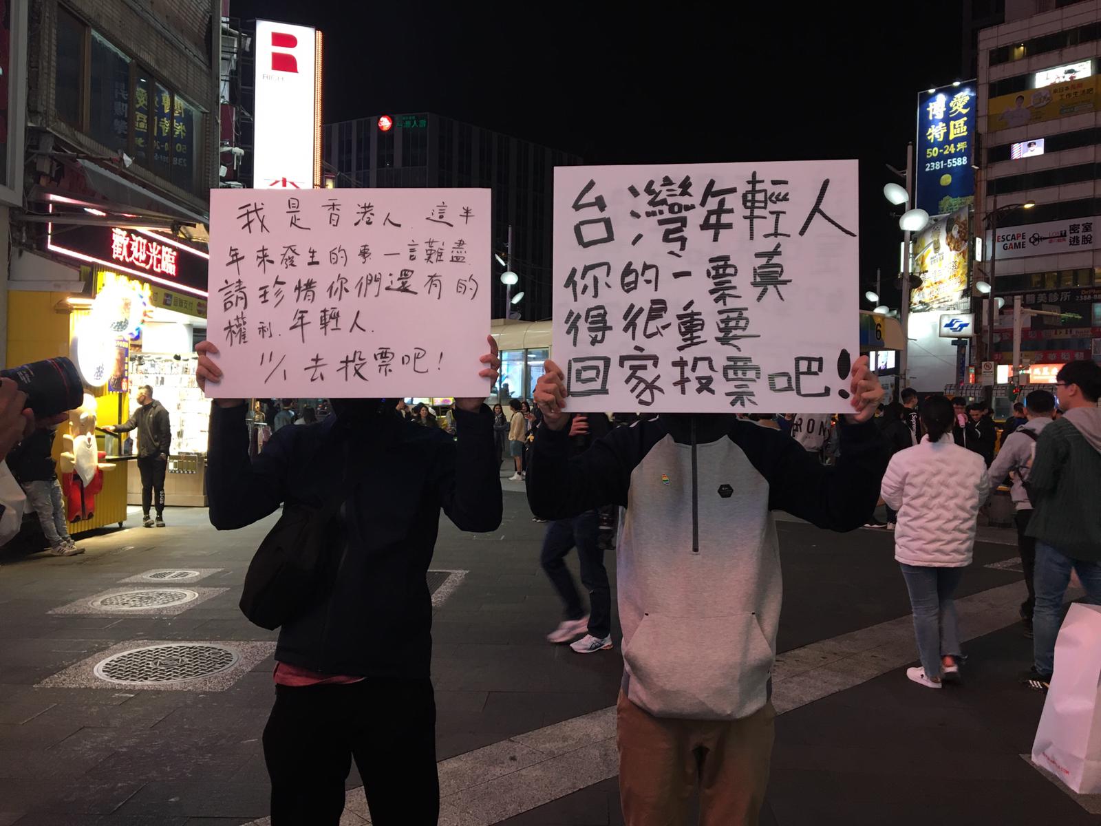 台灣大選2020社會新聞編輯推介 台北西門町港人舉牌籲投票 January 8, 202002630 在台北西門町,有人舉牌呼籲選民在星期六的大選投票。 其中一位舉牌人士、香港公務員陳先生,自言特意赴台為香港出力。 他解釋,本來不太了解台灣政情,但由於對香港政治局勢及「一國兩制」失去信心,希望台灣人能夠珍惜投票的權利,保持台灣不變。 他又謂,聽聞台灣年輕人投票氣氛薄弱,希望能夠以香港人身份,令選民認清投票的重要性。 記者、攝影:梁思行 Related Related tags : #西門町梁思行 李家超稱示威者有組織行動 或曾受外地訓練 Previous Post 報章社評節錄1.9 Next Post