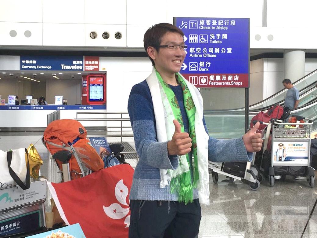 約十名吳俊霆朋友到機場迎接,包括早前與他一起登上珠峰基地營的,腎臟移植康復者陳國明及黃炎華。經歷過生死之旅,本身是物理治療師的吳俊霆勉勵,香港人要勇於追夢,遇到困難要勇敢面對才能夠問心無愧。