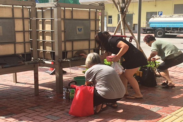 【本網訊】啟晴邨於本月9號被驗出部分食水樣本含鉛量超標,水務署早上派出一架水車,停在康晴樓附近,為居民提供食水。