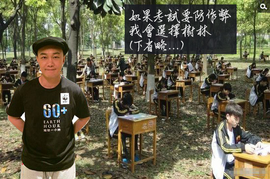 (本網6日訊)正常考試應該是在教室禮堂進行,但4月28 日,荊州成豐學校高一高二學生的期中考試卻移師樹林。 有記者聯繫到該校謝老師,他表示:「這是學校第一次嘗試, 由於近兩日天氣好,加上學校有一片很大的樹林, 考生在樹林裡考試環境好,更利於學生正常發揮, 而且課桌間隔大,可以防止學生抄襲作弊。」