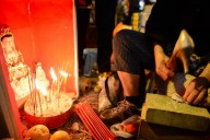 「嘟!嘟!嘟!」車門關上,新一批喪屍蹣跚地走進車廂,站在我倆面前的是一位白領。他把公事包放在地下,用雙腳夾著,雙手則掛在我頭上的扶手上。他跟讓座的那位白領一樣低著頭,在嘈吵的車廂裏嘗試閉目養神。