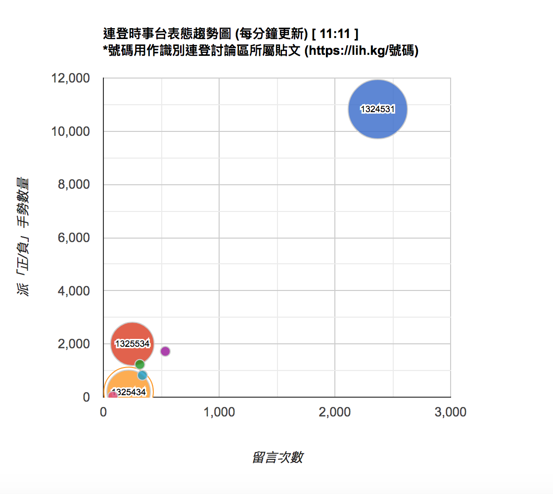 「顏色圓圈」愈高顯示「俾like」數量愈多