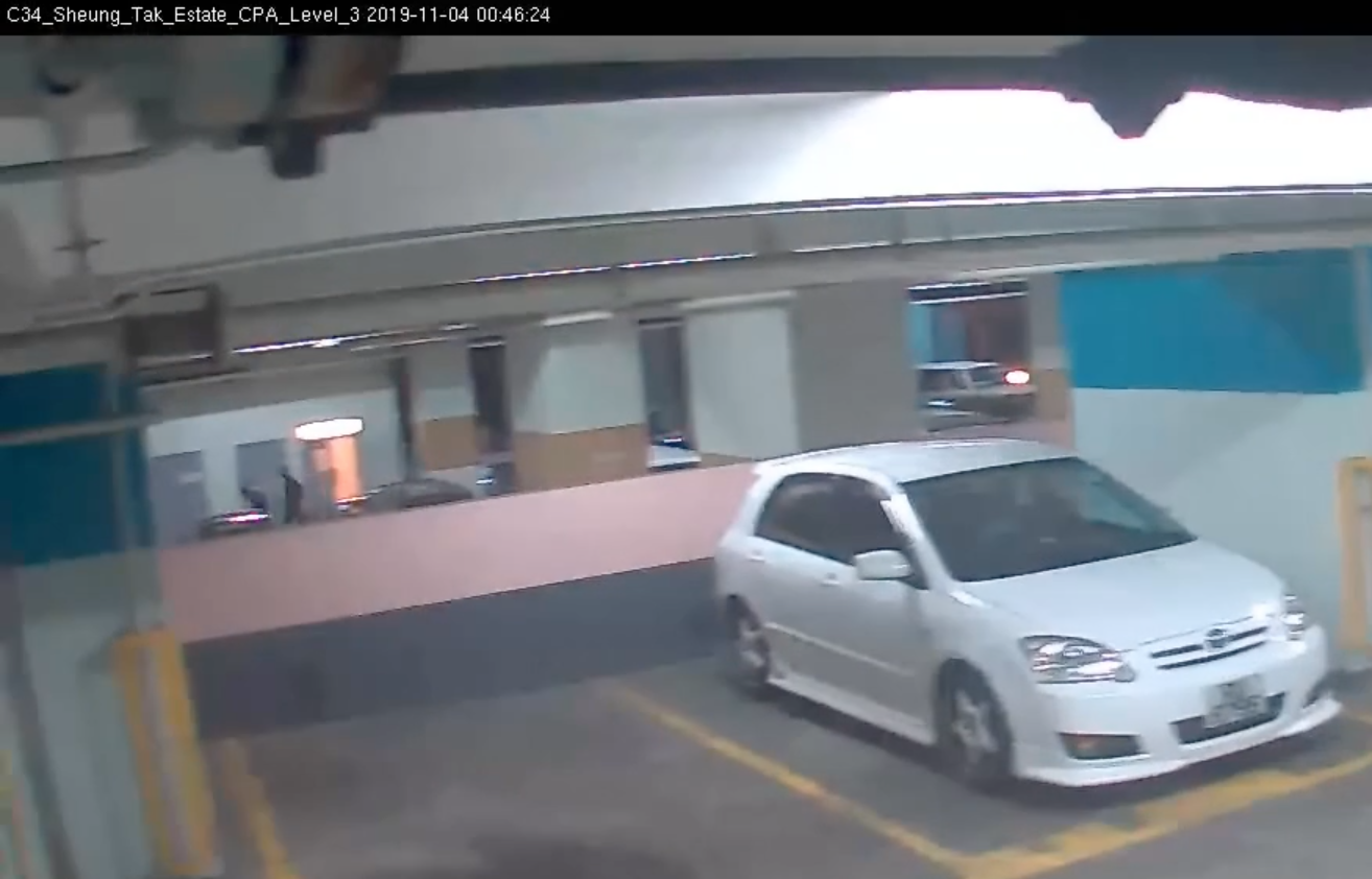 領展公開停車場的閉路電視影片,三樓的攝錄機「C34」(片段第6分30秒)顯示 ,零時46分有兩名深色衣服人士同行,期間一人懷疑推前另一人,其後去向未明。