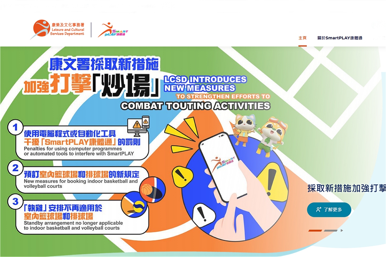 康文署發言人表示說,「SmartPLAY康體通」已加入新條件,禁止使用電腦程式或其他自動化工具,預訂場地或干擾系統正常運作。如有違反,康文署會暫停相關帳戶360日,毋須給予任何預先通知。