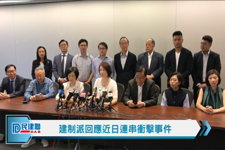 39名建制派議員今日(15日)就近日不同地區的遊行聯署回應,指和平的遊行已多次被一些暴力示威者有組織和有部署地利用,其衝擊手段亦已超出反對修訂《逃犯條例》的訴求。他們對任何違法、暴力及誣衊詆譭警隊的行為予以最嚴厲譴責,並呼籲各界人士緊守和平理性的原則處理社會問題,切勿包容暴力行為或為暴力示威者開脫。