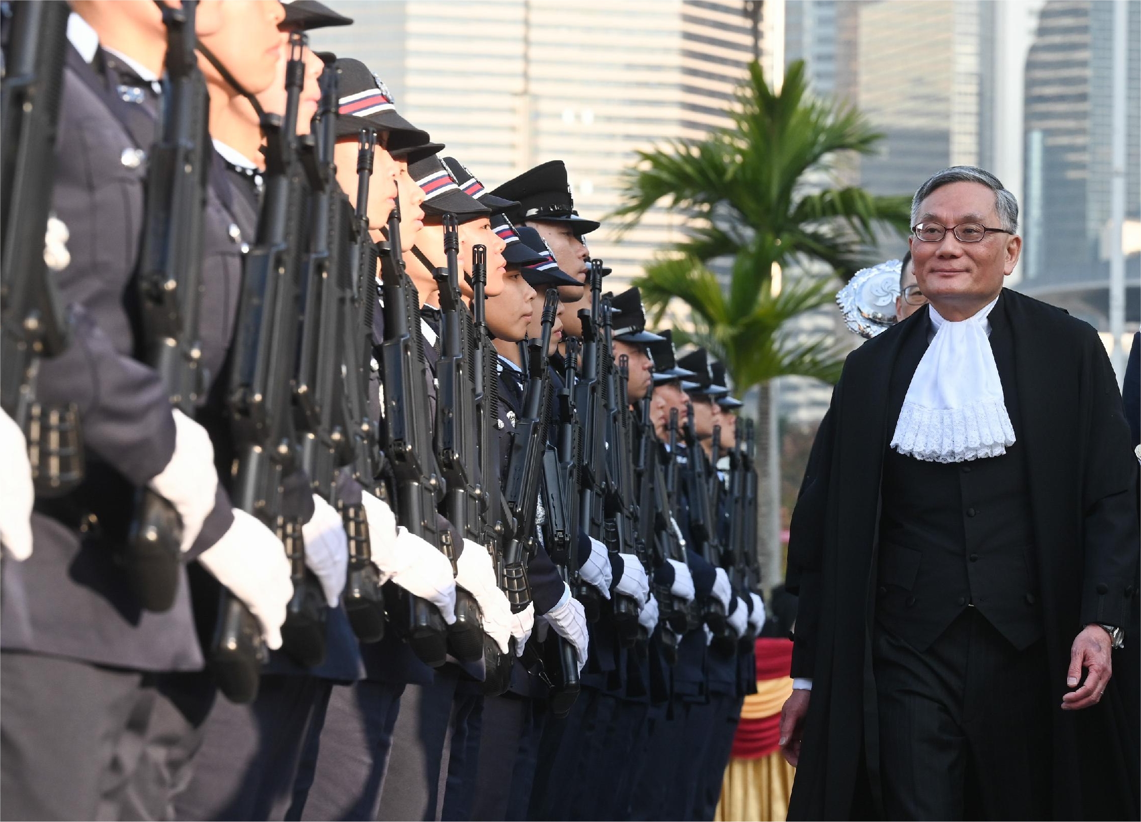 終審法院首席法官張舉能今日主持2025年法律年度開啟典禮,並於愛丁堡廣場檢閱香港警察儀仗隊。
