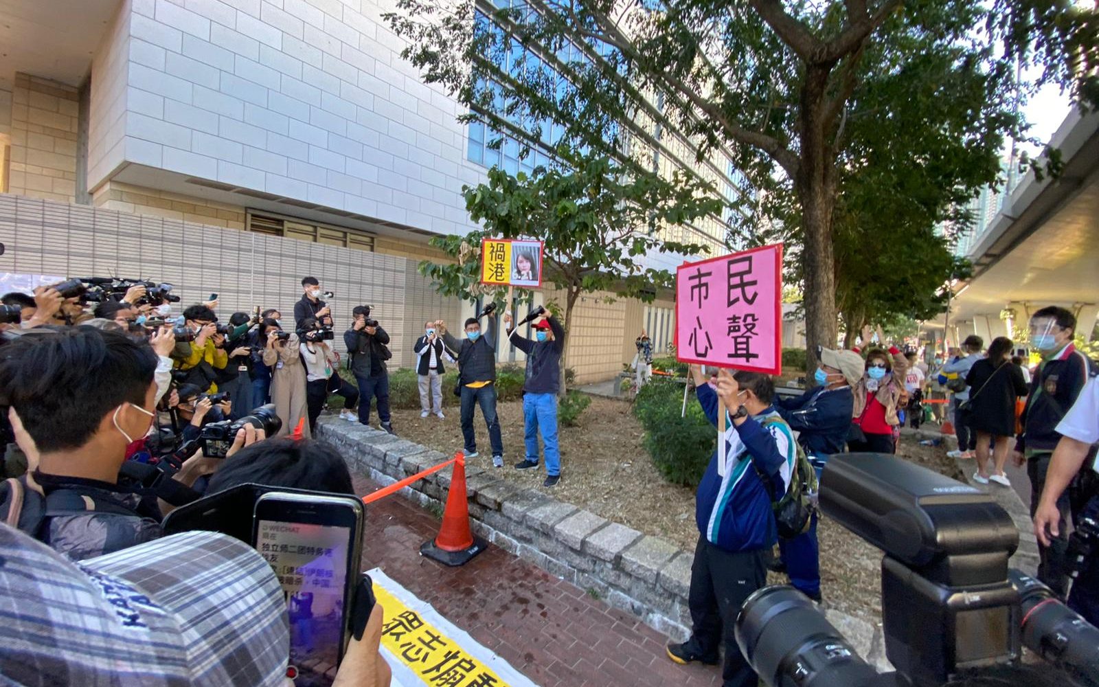在法庭外,有人在判決後開香檳慶祝,亦有持反對意見人士爭執,警方一度警告或涉限聚令,呼籲人群散開。