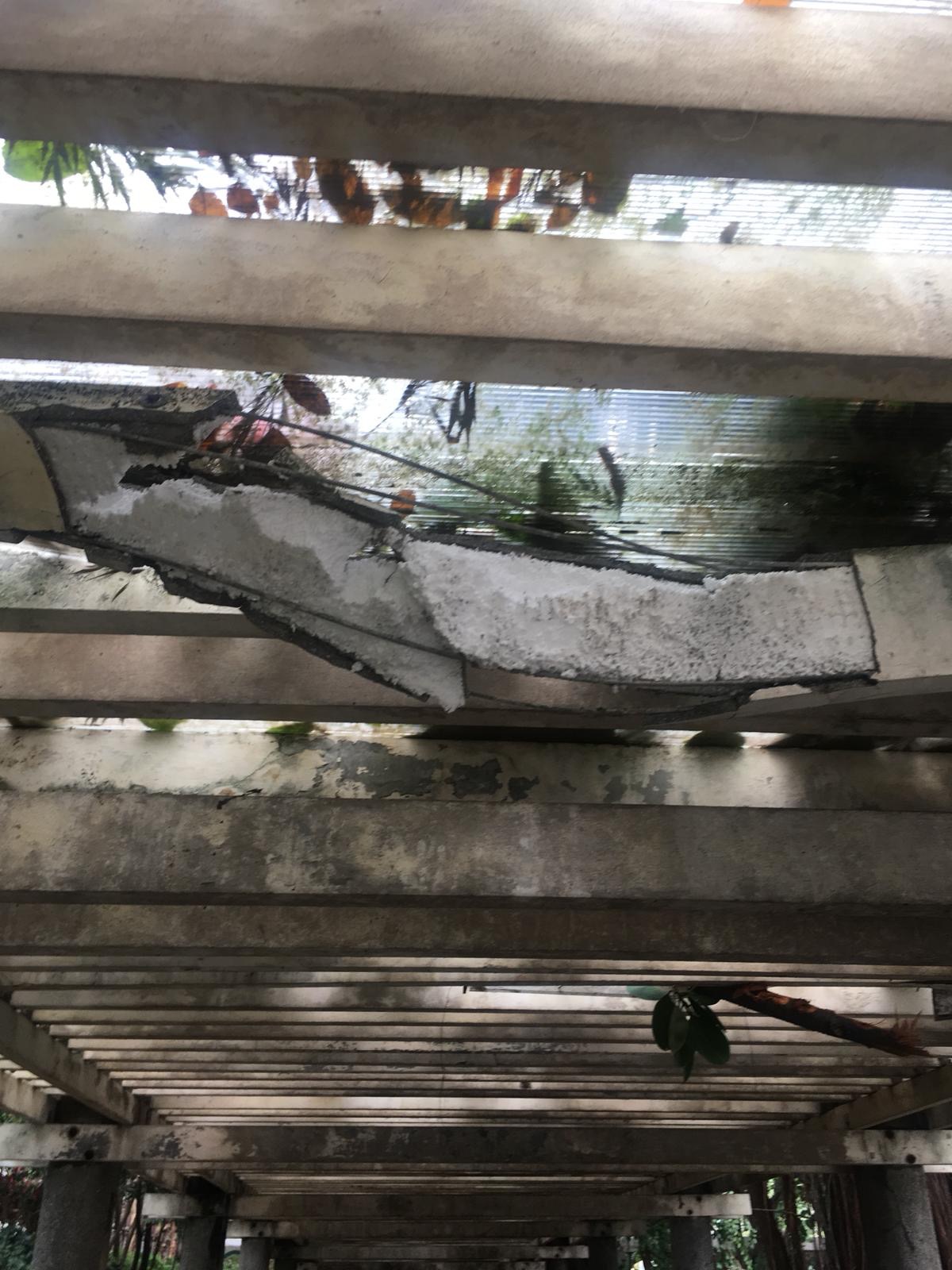 強颱風山竹襲港造成廣泛破壞,有屯門良景邨居民發現,邨內街市與保良局方王錦全小學之間的小徑,有一道橫樑斷裂,露出「發泡膠」。