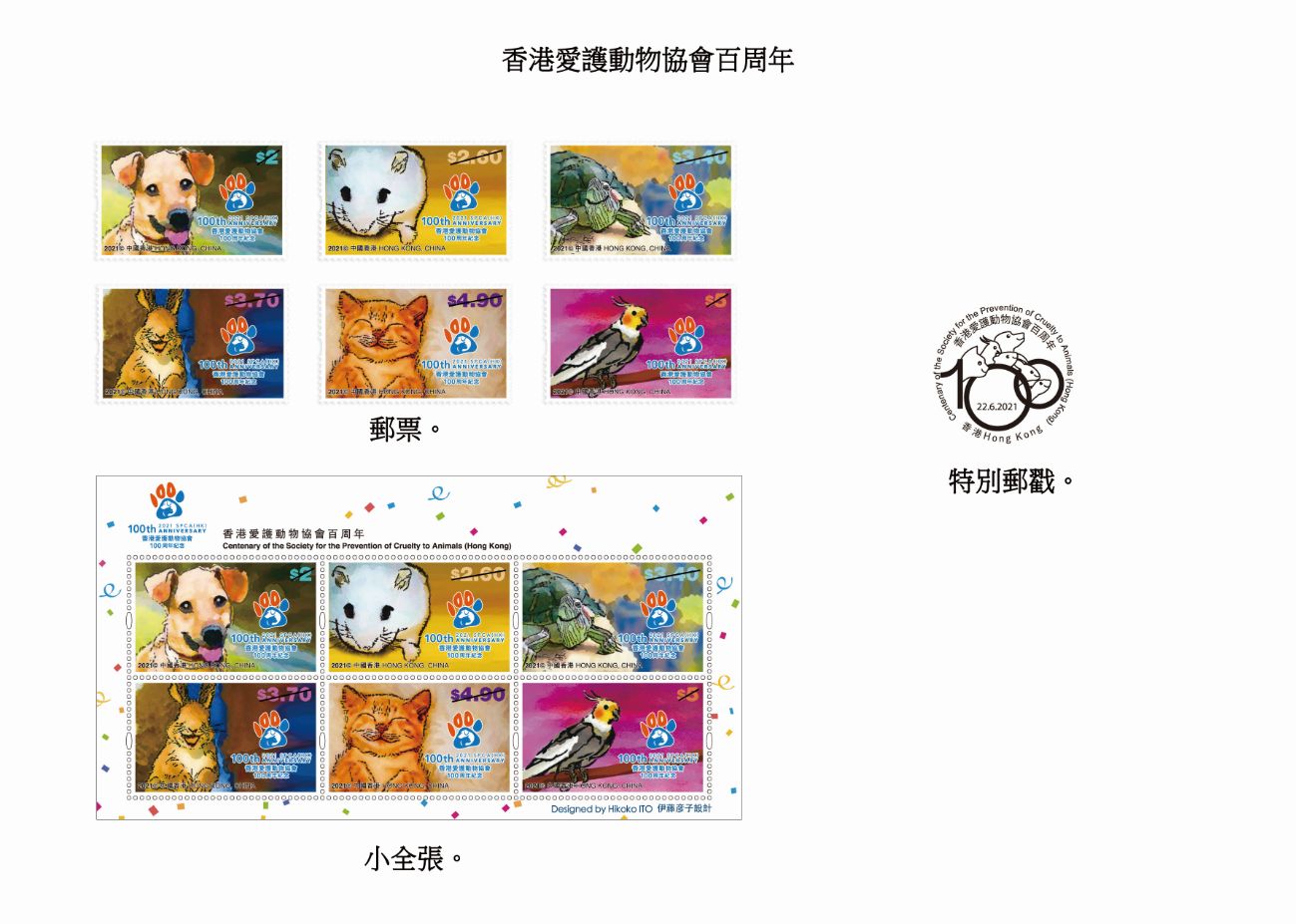 社會新聞編輯推介 愛護動物協會百周年紀念郵票 June 10, 202101070 香港愛護動物協會成立一百周年,香港郵政將於本月二十二日發行「香港愛護動物協會百周年」紀念郵票,宣揚「尊重生命,善待動物」的訊息,並推廣人類與動物在社會上和諧共處的理念。 一套六枚的紀念郵票選用油畫風格,利用繽紛的色彩和活潑的畫風,展現愛協百周年誌慶的歡欣氣氛。郵票上分別繪有唐狗、倉鼠、紅耳龜、兔子、短毛家貓及雞尾鸚鵡六種動物,各自傳達不同訊息。 (圖片來源:政府新聞處) Related Related tags : 香港愛護動物協會 海下遊客中心添虛擬實景試潛水 Previous Post 林鄭月娥視察安泰邨:努力多管齊下闢地 Next Post