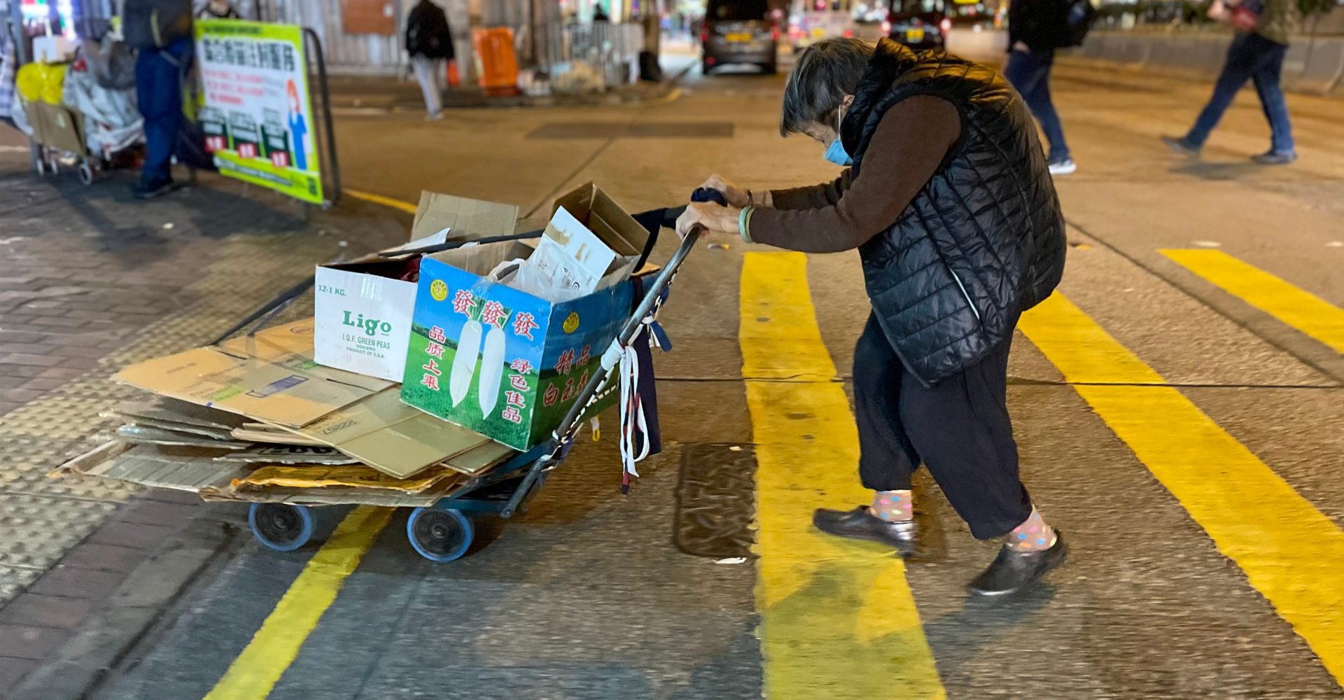 拾荒者是一份沒有被社會定義的工作,全港約有3000人。這些每天推着手推車的拾荒老人,看來瘦骨嶙峋,卻推着數十以至上百磅的紙皮在行人路走,密密地為香港環保回收業貢獻,擔當起了回收業的前線工作。