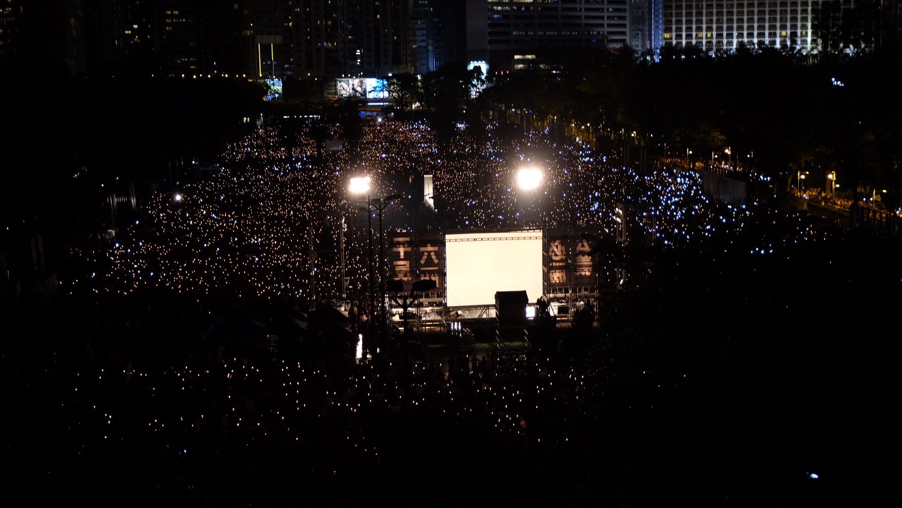 「六四事件」30周年,支聯會在維園舉行燭光晚會,參加者坐滿六個硬地足球場,部份人要到草坪集會。支聯會副主席蔡耀昌宣布,有超過18萬人參加,警方表示高峰時有3.7萬人。