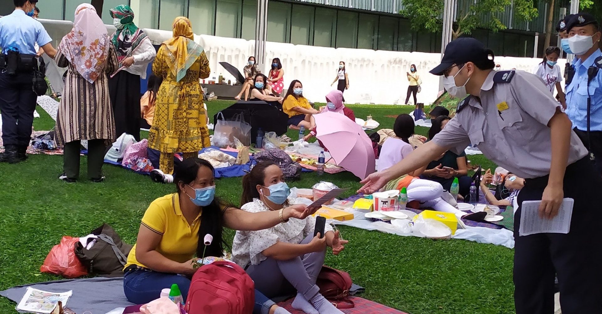 食環署在兩日(五月八日至九日期間)與香港警務處、勞工處、相關地區民政事務處、康樂及文化事務署攜手,在外傭周末及假日慣常聚集的中環添馬公園、遮打道及花園道、灣仔的維多利亞公園及糖街、旺角道行人天橋及荃灣路德圍等附近一帶的公眾地方採取跨部門聯合行動。