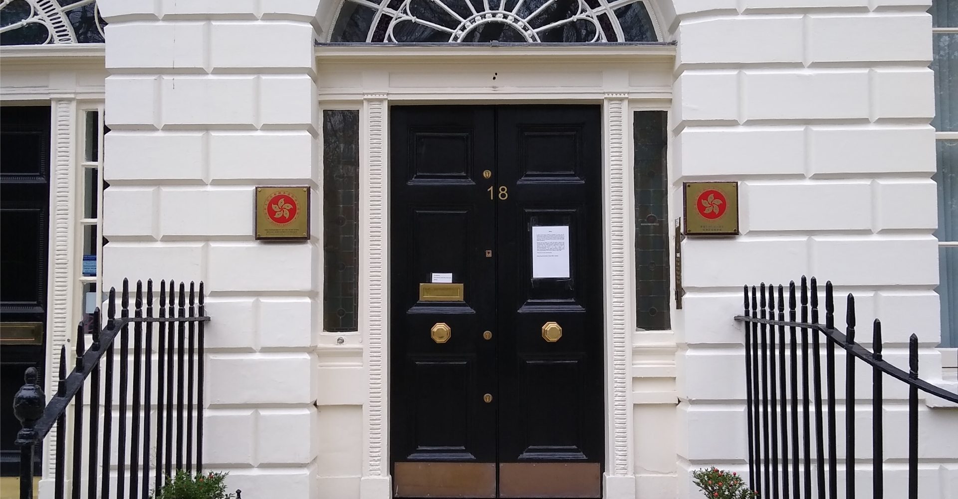 香港駐倫敦經濟貿易辦事處於英國時間29日,遭人蓄意破壞懸掛在正門外牆上的區徽,以及在正門旁邊外牆噴上紅色油漆的粗言穢語文字。特區政府強烈譴責這些以非法手段「意圖威嚇他人的行為」。
