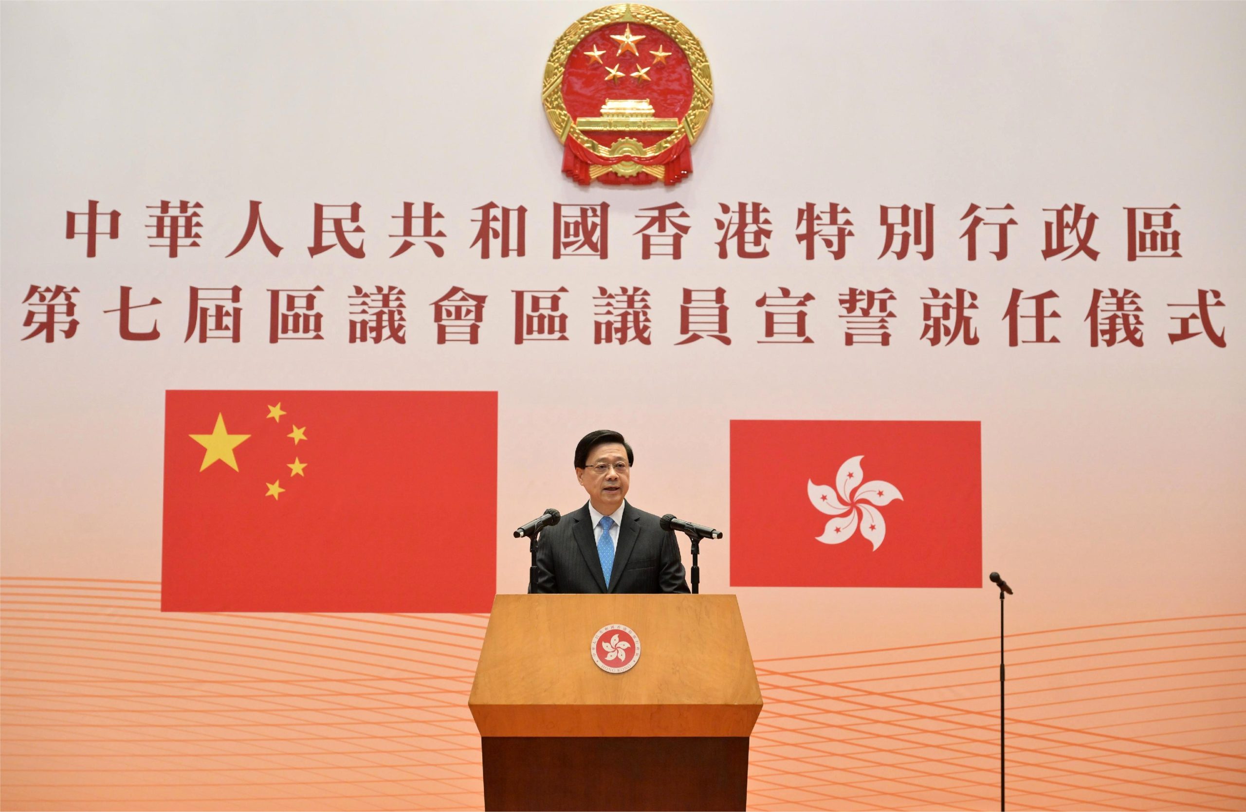 行政長官李家超今日在新一屆區議員宣誓儀式上說,區議員「要做好特區政府施政的助手」,必須齊心協力支持《基本法》第23條立法工作。