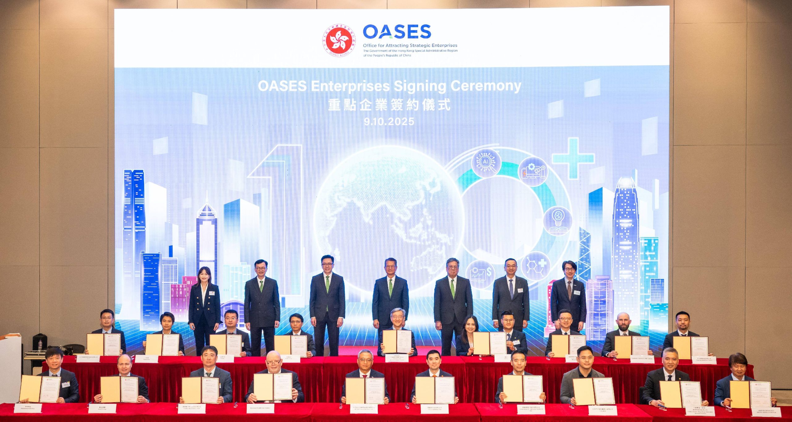 簽約儀式由財政司司長陳茂波主持,當中包括3家全球十大醫藥企業,也包括從事人工智能大型語言模型、自動駕駛技術、微電子領域、跨境金融服務的領軍者,以及具全球影響力的新媒體平台等。