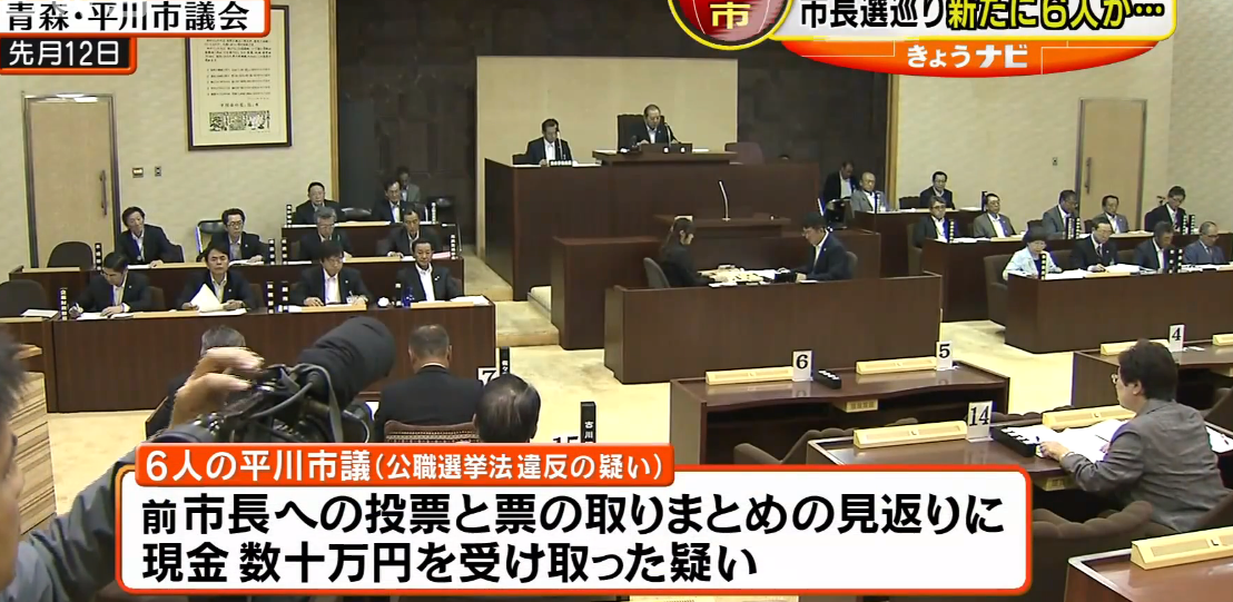 案發於今年1月的平川市長選舉,落選的前市長大川喜代治透過中間人,以20萬日元(約1萬5千港元)至100萬日元(約7萬6港元)進行賄選。警方在2月就逮捕了9名議員,當中5人已辭職或自動喪失議員資格。