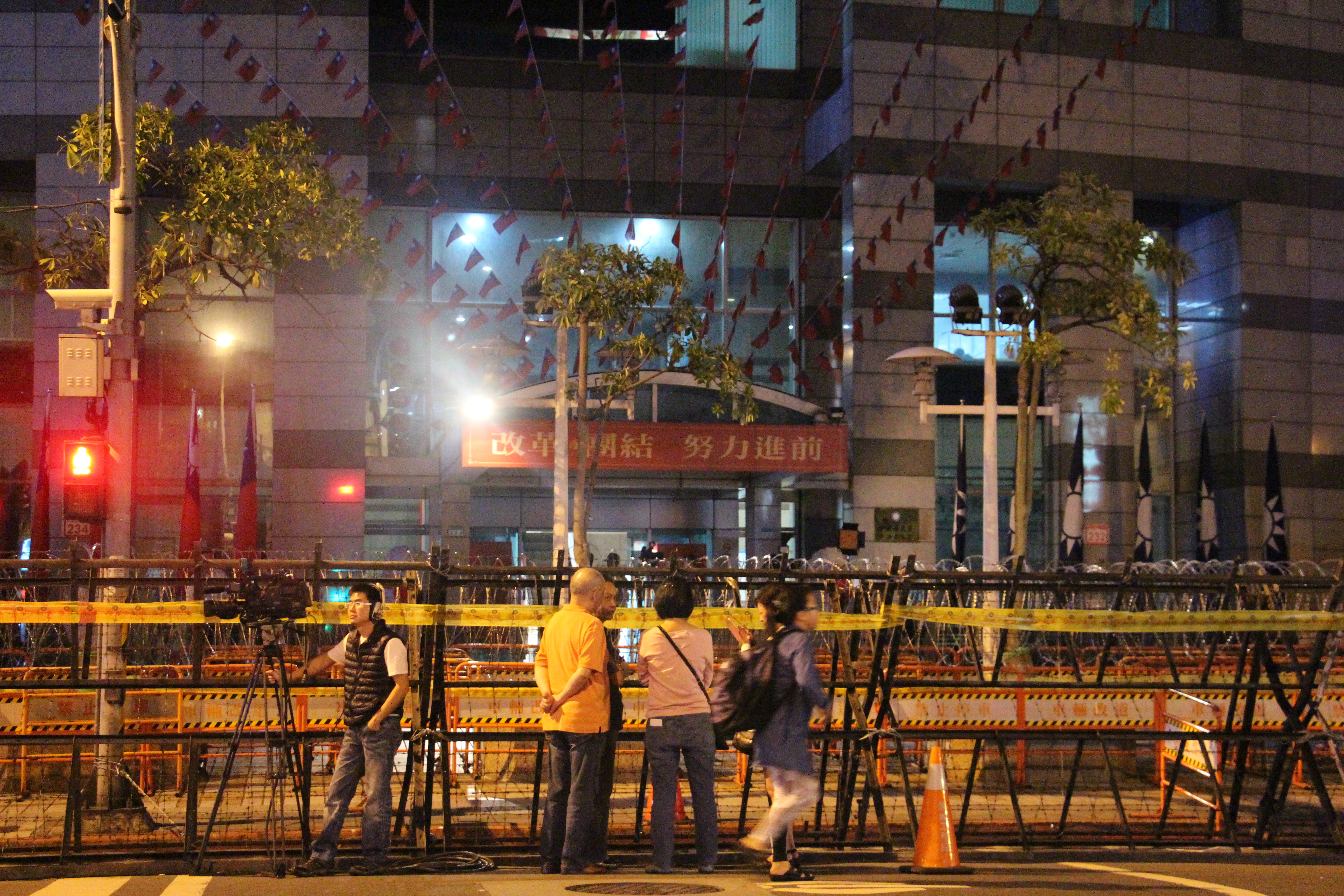 國民黨九合一選舉慘敗,台北警方在國民黨總部外架起重重鐵馬,嚴防衝擊。