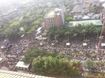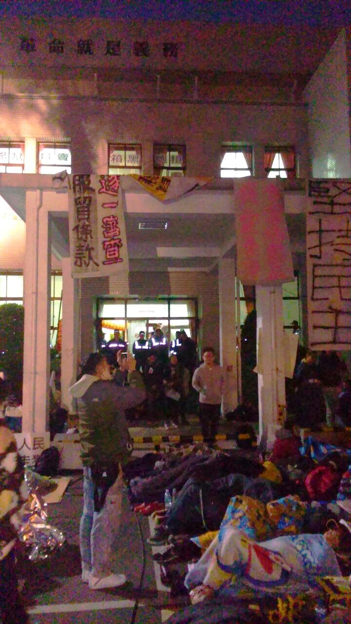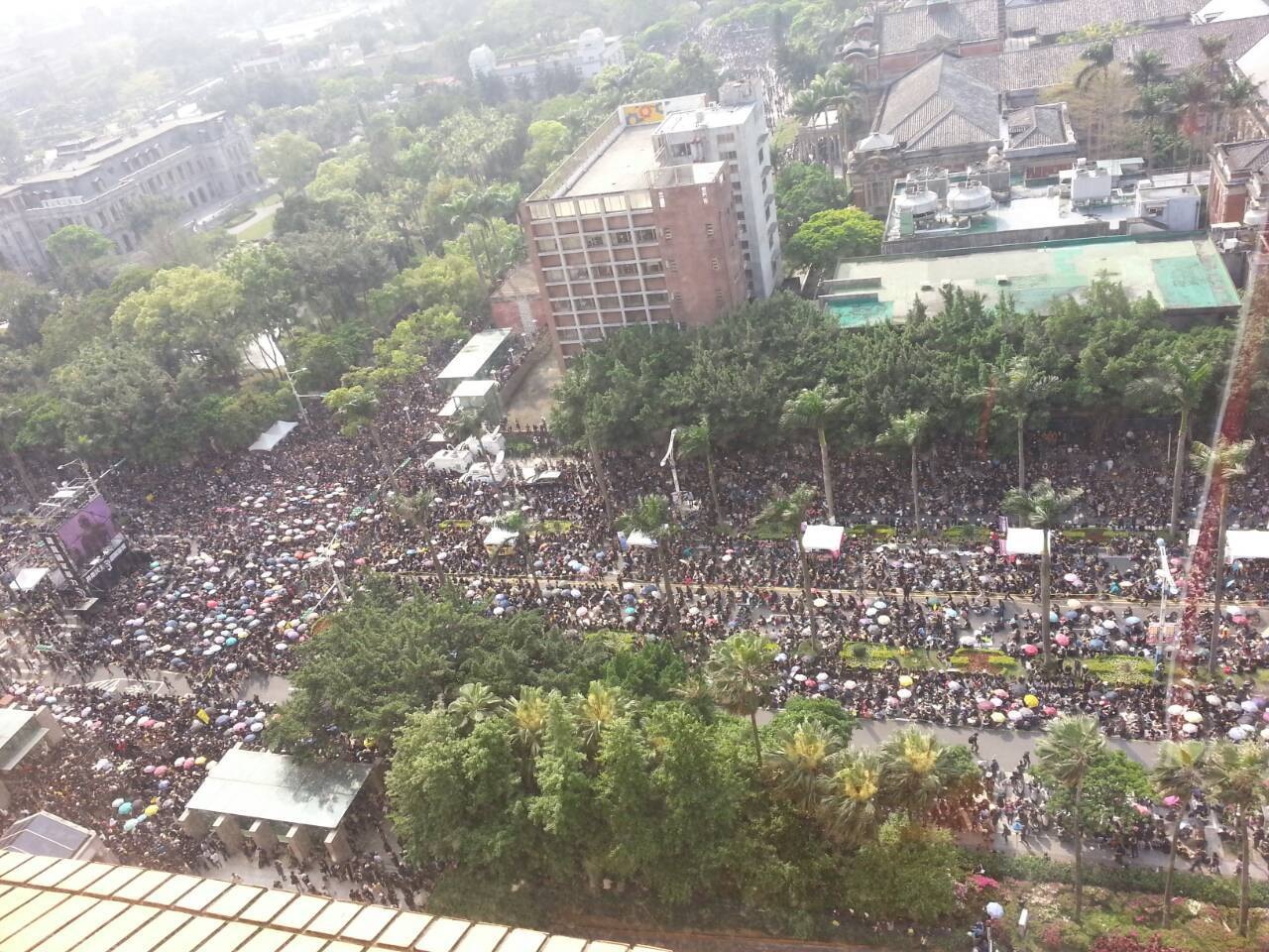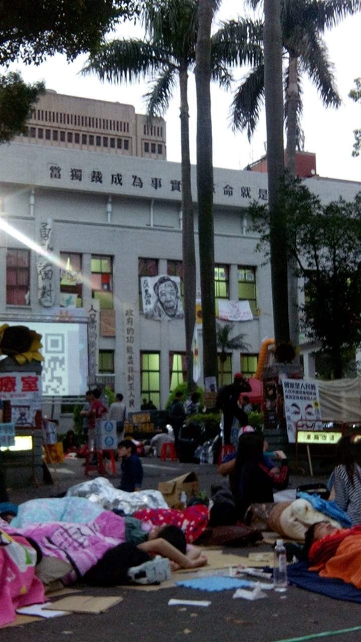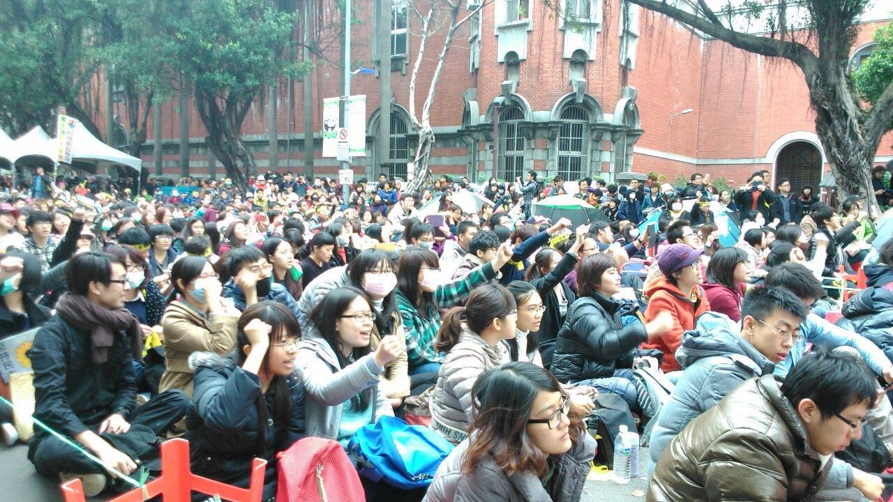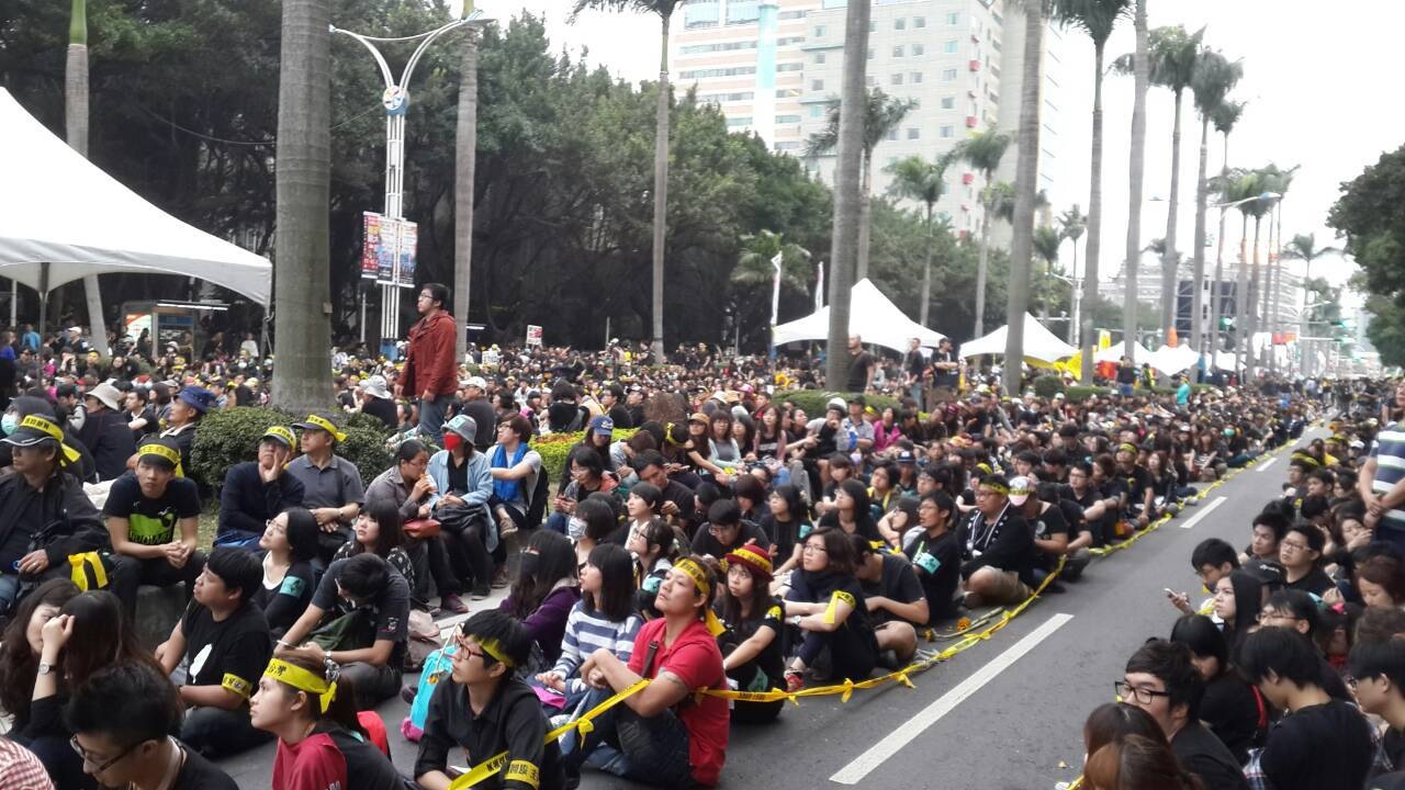 反服貿從3月18日開始,群眾至今仍在抗爭。蔡說出現時的台灣情況:「台中以南的人民也有來參加,只是比台北的少;學校有的罵有的支持,但參與罷課靜坐的學生不會因此被踢出學校。」他覺得,學生的本份除了念書,關心國家大事也是學生本份,從示威靜坐中學習民主,對議題更深入的了解,也是另類的學習。