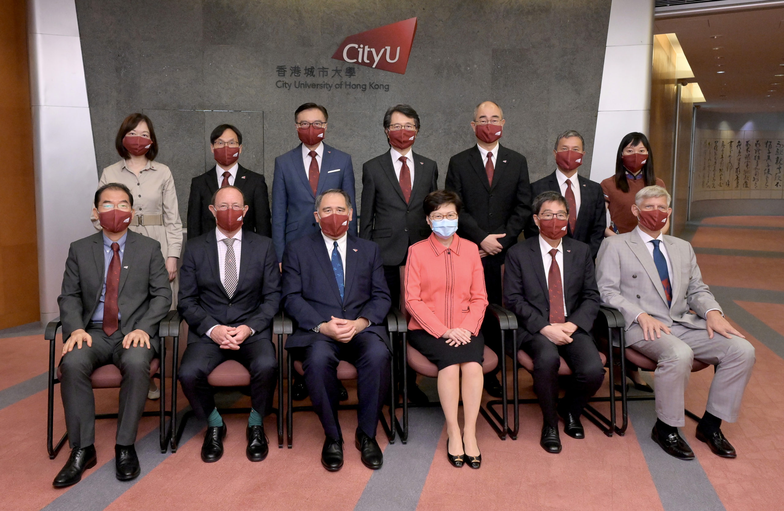 行政長官林鄭月娥(前排右三)與城大高層合照。