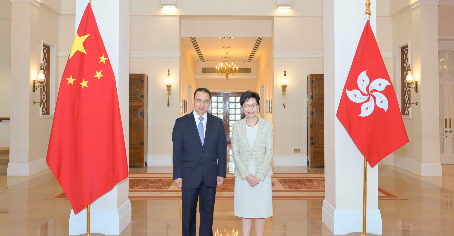 行政長官林鄭月娥(1日)下午在禮賓府與新任外交部駐港特派員公署特派員劉光源會面。