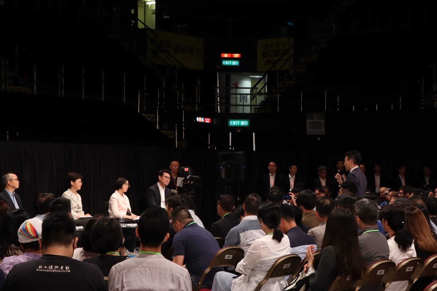 市民(#A27):「我覺得你對大家唔係一視同仁咯,你淨係爭取政商界嘅支持,你覺得你數都票,可以過,你就覺得唔需要聽我地講野,直至到你覺得唔係窩,個社會氣氛好過分窩,可能你已經承受唔到了喔,你先至慢慢一步一步咁落來同我地對話,但係你知唔知你上一次講嗰班人係no stake in society,係幾hurt大家啊?如果你真係想知道大家嘅民意嘅時候,你願唔願意公投啊?你可以俾大家去公投,我都唔敢講我代表幾多人,但係你願意俾人公投嘅時候,你咪聽到市民嘅聲音咯。」