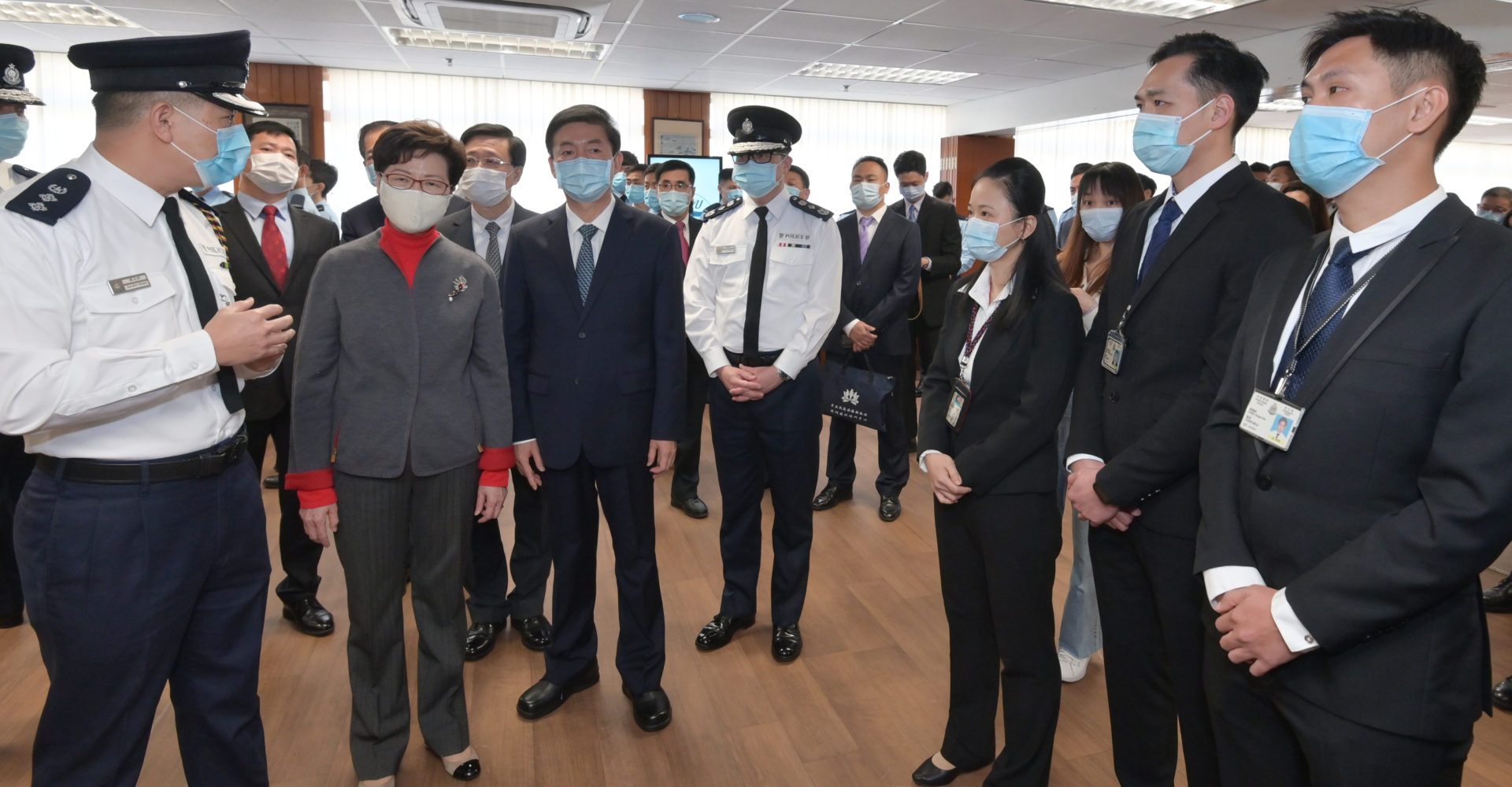 另外,在防控新冠肺炎疫情方面,警隊參與並利用「重大事件調查及災難支援系統」協助衞生署衞生防護中心追蹤緊密接觸者。林鄭月娥一行到訪有關辦公室,獲悉該系統至今已協助調查65個個案或群組,並識別逾28000名接觸者。