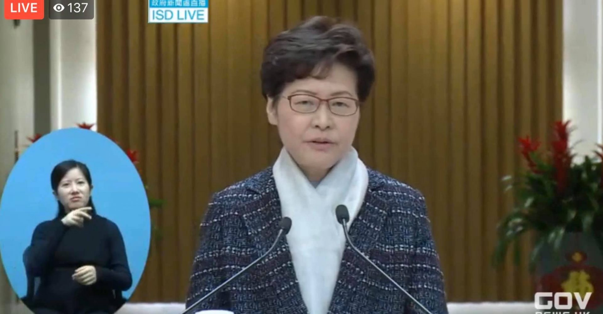 另外,林鄭月娥表示,香港採購口罩「不成功」,政府要帶頭「慳啲使」讓醫護人員用,官員有時不准戴口罩。她解釋,在三個條件之下可以例外,包括患病、從事醫護或安老工作,及置身人群密集地方。