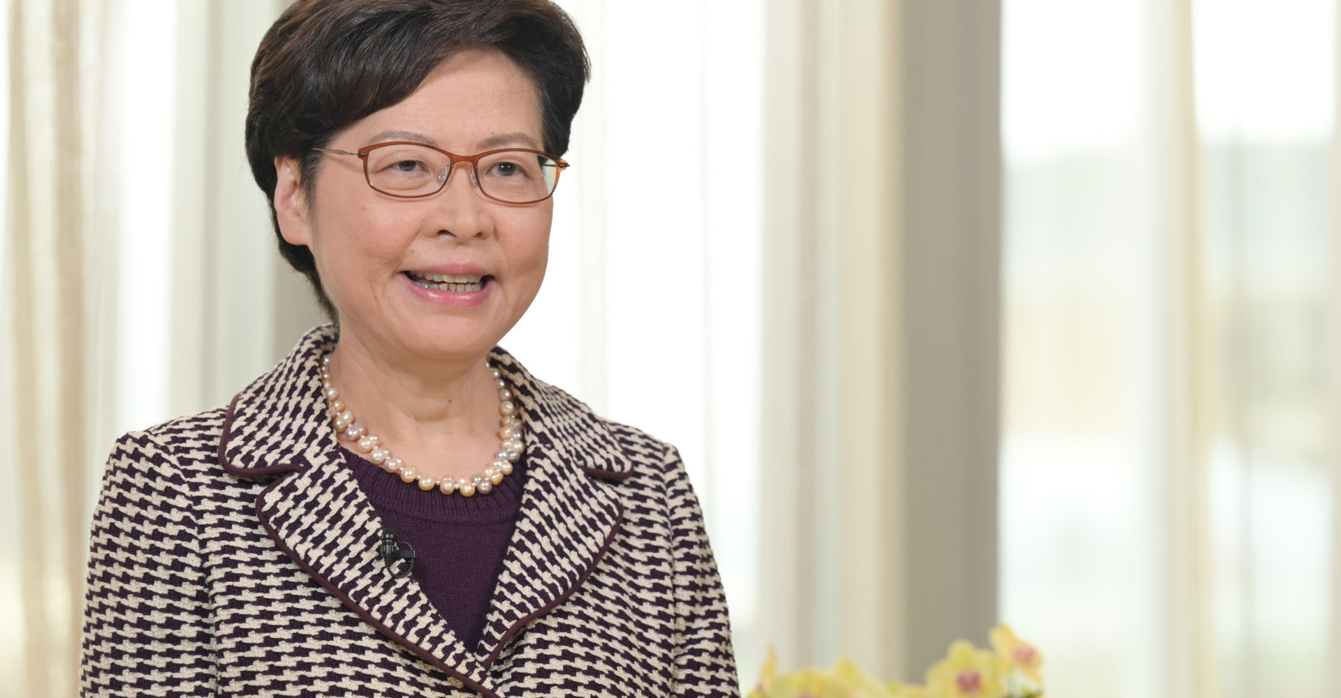 圖片內容:行政長官林鄭月娥透過視像致辭