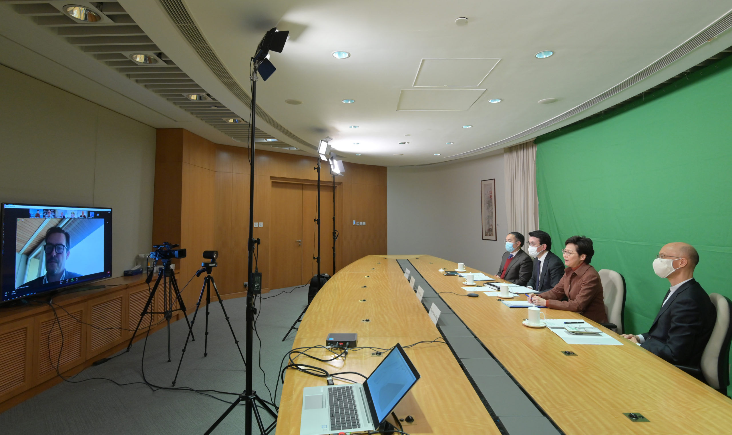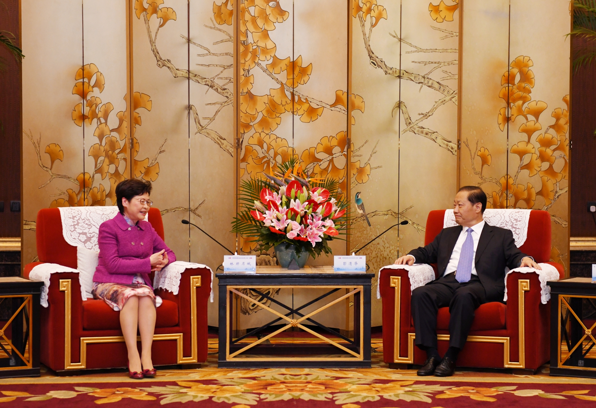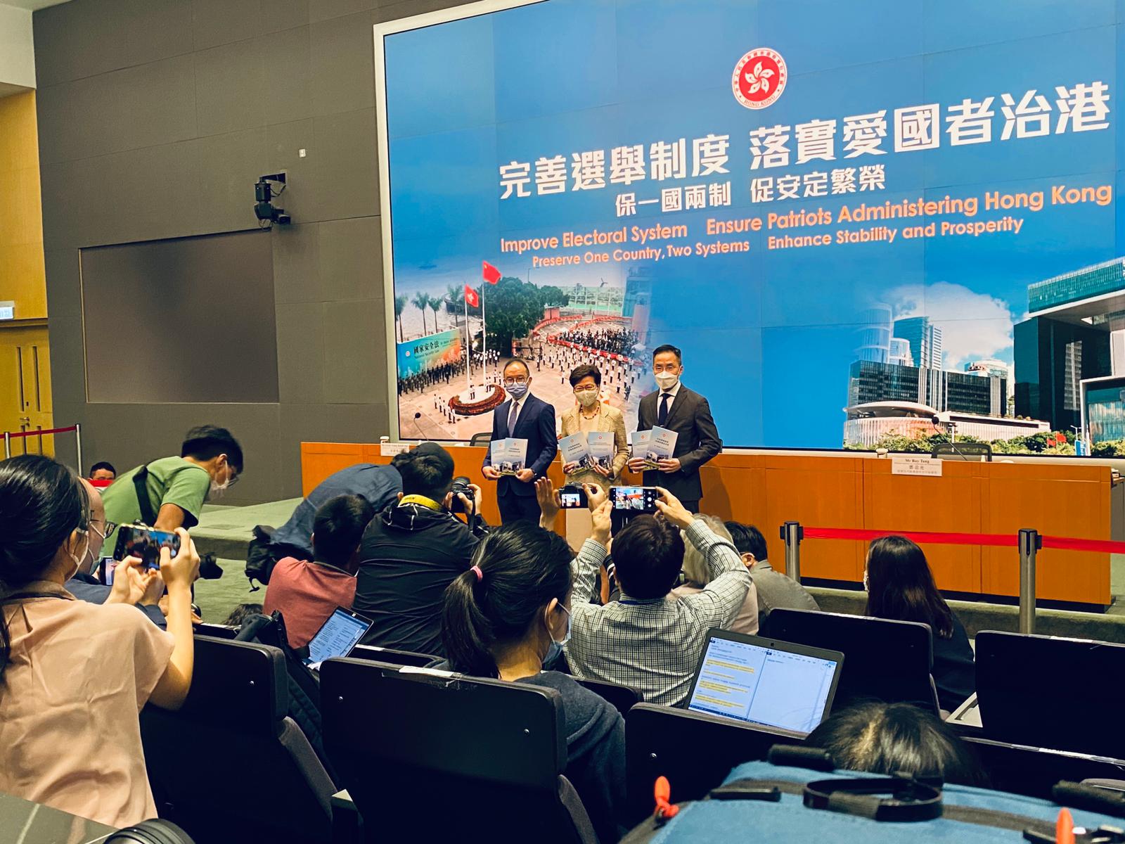 • 2014年林鄭月娥攜同律政司長袁國強和政制及內地事務局局長譚志源組成「政改三人組」,就2016年立法會產生辦法和2017年行政長官產生辦法進行諮詢,並於2015年1月向北京中央國務院港澳辦呈交俗稱《民情報告》的《近期香港社會及政治情況報告》