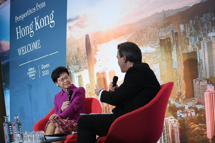 林鄭月娥在「香港之夜」活動的對談環節中表示,香港雖然經歷困難時期,但港府會致力捍衛香港賴以成功的優勢,包括法治,對香港未來充滿信心。「香港之夜」是香港代表團在達沃斯推介香港的旗艦活動,世界經濟論壇創辦人及執行主席施瓦布教授亦有出席致辭,其他出席者包括約二百多名來自多國的政、商界領袖和傳媒翹楚。