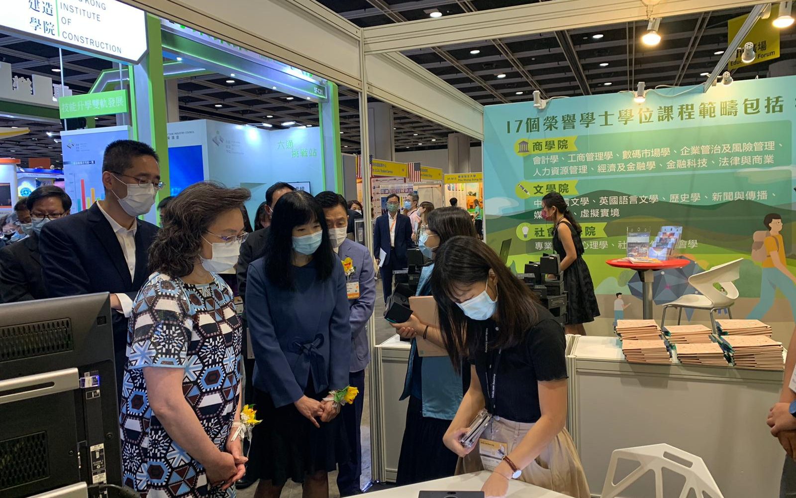 中學文憑試(DSE)在本月21日放榜,考試及評核局今年首度試行以手機短訊,向考生發放成績。在灣仔會展舉行的香港貿發局教育及職業博覽,香港樹仁大學設置攤位協助外界了解各個課程,包括最新的「媒體設計與虛擬實境科技(榮譽)文學士」。香港樹仁大學招生事務處總監梁小琪表示,今年招生處網站特設申請平台方便學生報名。