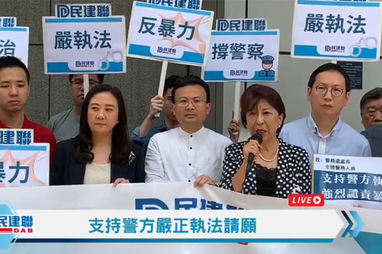 約20名民建聯成員到警察總部外發表聲明,指支持警方執法,並要求警方考慮就遊行集會申請,暫停發出不反對通知書。立法會議員蔣麗芸表示,目前還未到需要戒嚴的情況,認為應從暫停發出不反對通知書的方向考慮。