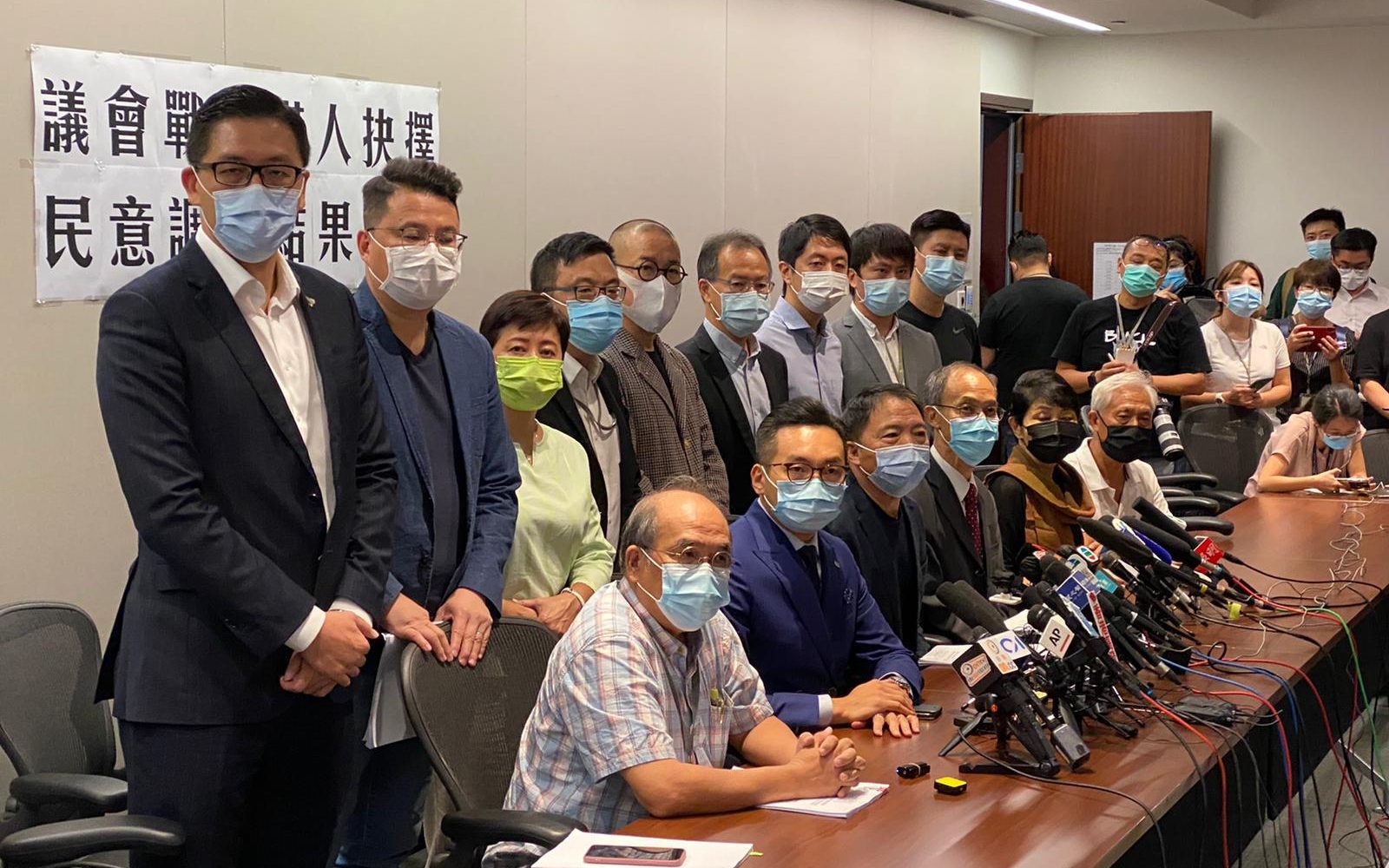 民主黨主席胡志偉表示,支持去或留的意見均不過半數,因此議員要作政治判斷。他指出,作出政治判斷的考慮點是希望盡能力拖延政府推行「惡法」的速度,緊守議會戰線,三戰線(民間、議會、國際)互相補足,成為更團結的力量面對政府,以及保住發聲平台讓公眾和國際社會可聚焦討論,故希望努力保住議會戰線,不要雙手奉上。